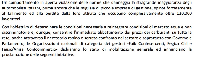 Sciopero dei benzinai, il comunicato_congiunto (PDF)