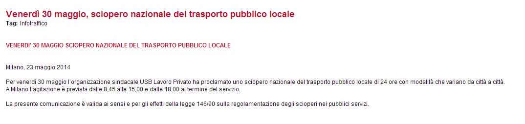 ROMA – Da Roma a Milano venerdì 30 maggio sciopero nazionale del trasporto pubblico indetto dall’Usb Lavoro privato.
