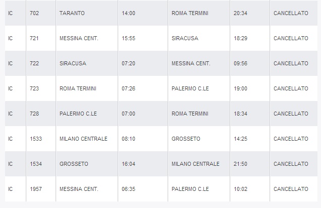 Ntv: la circolazione dei treni ad alta velocità del gruppo Italo Treno, gestiti dall’azienda NTV (Nuovo Trasporto Viaggiatori), non dovrebbe invece subire variazioni rispetto al normale svolgimento del servizio.