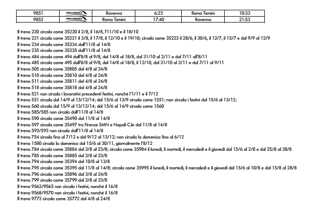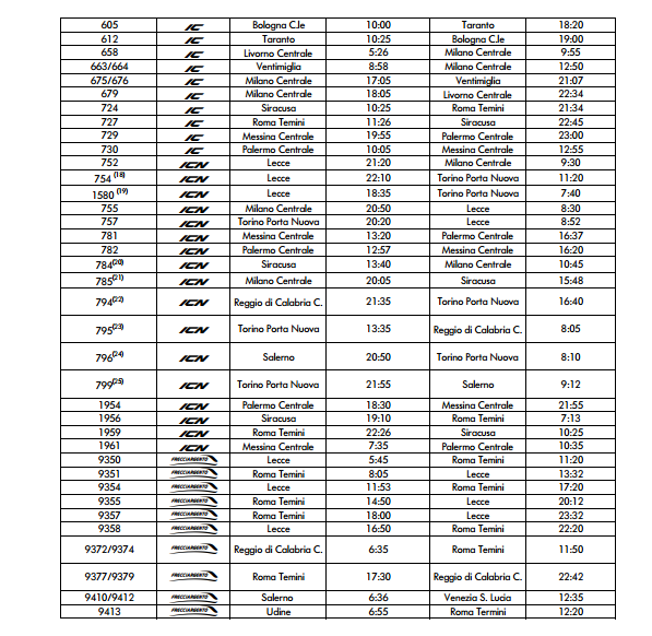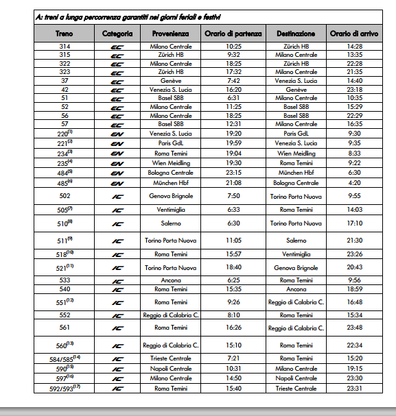 Per quanto concerne il servizio nazionale di Trenitalia, è consultabile l’elenco dei treni a lunga percorrenza garantiti (scarica qui). È a disposizione degli utenti il profilo Twitter FSNews.