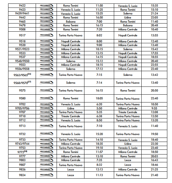 L’elenco dei treni a lunga percorrenza garantiti da Trenitalia: