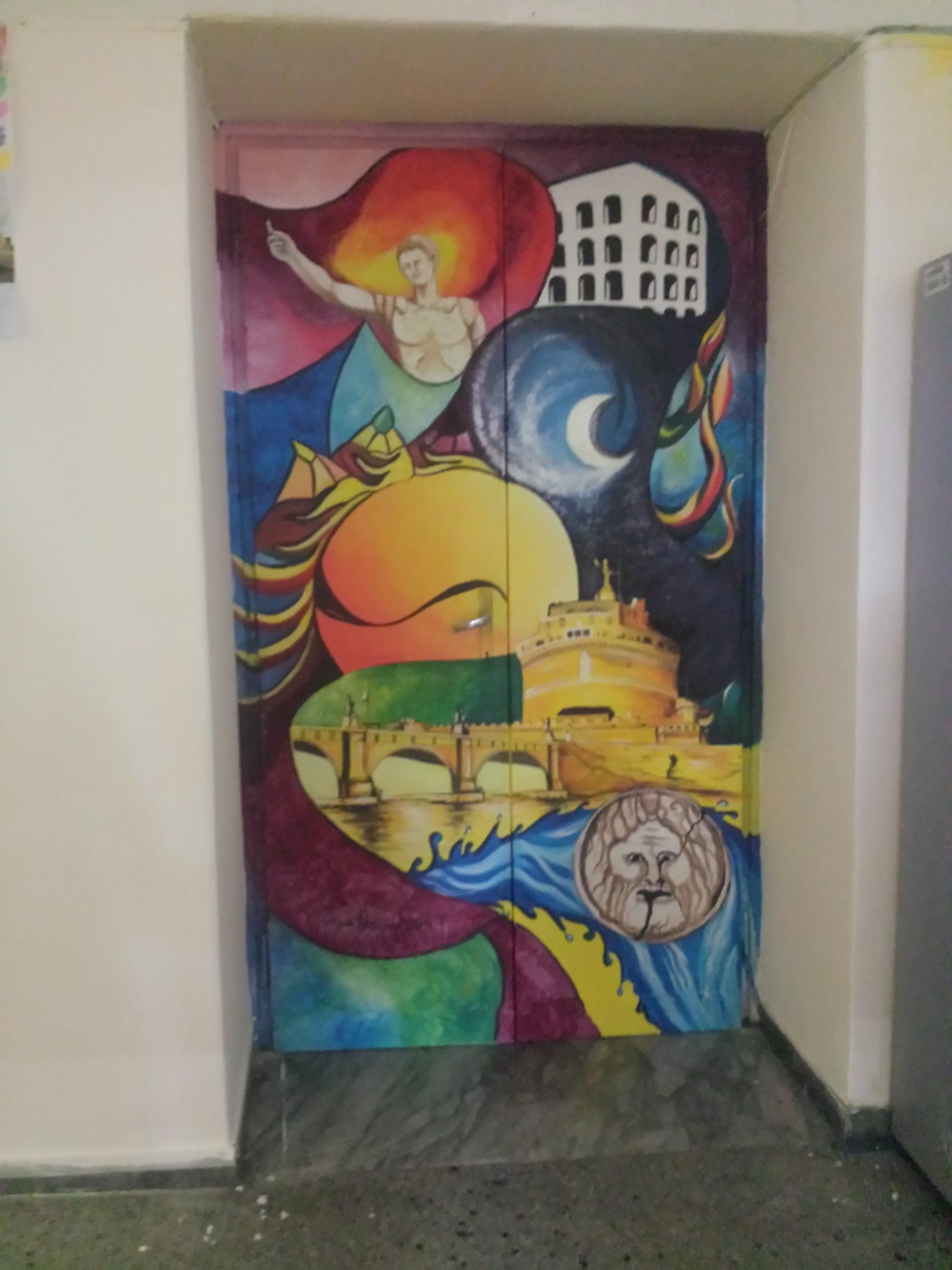 Una gita fatta per Roma e una ricerca proposta dall’insegnante è stata lo spunto per sviluppare un tema artistico che presto potrà diventare un dipinto o un affresco per una delle tanti pareti e porte della scuola, raccontano le insegnanti Marilena e Patrizia.