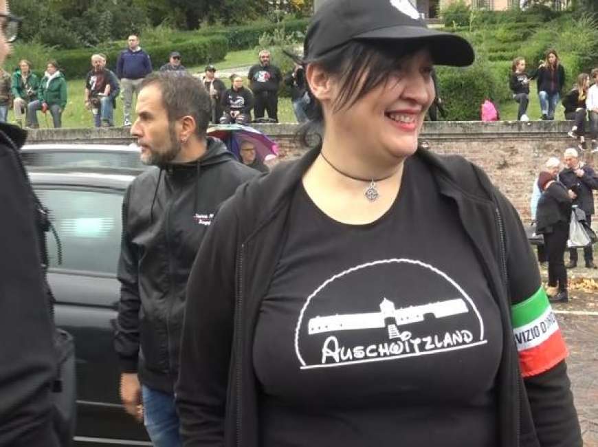 ROMA – Una multa di 9.050 euro per aver indossato la maglietta con la scritta “Auschwitzland” alla commemorazione, lo scorso ottobre a Predappio, della marcia su Roma. E’ quanto deciso dal tribunale di Forlì per Selene Ticchi D’Urso, la militante di Forza Nuova già sospesa dal partito di estrema destra. Il decreto penale prevedeva, in realtà, una condanna a quattro mesi di reclusione, convertita poi in sanzione pecuniaria.