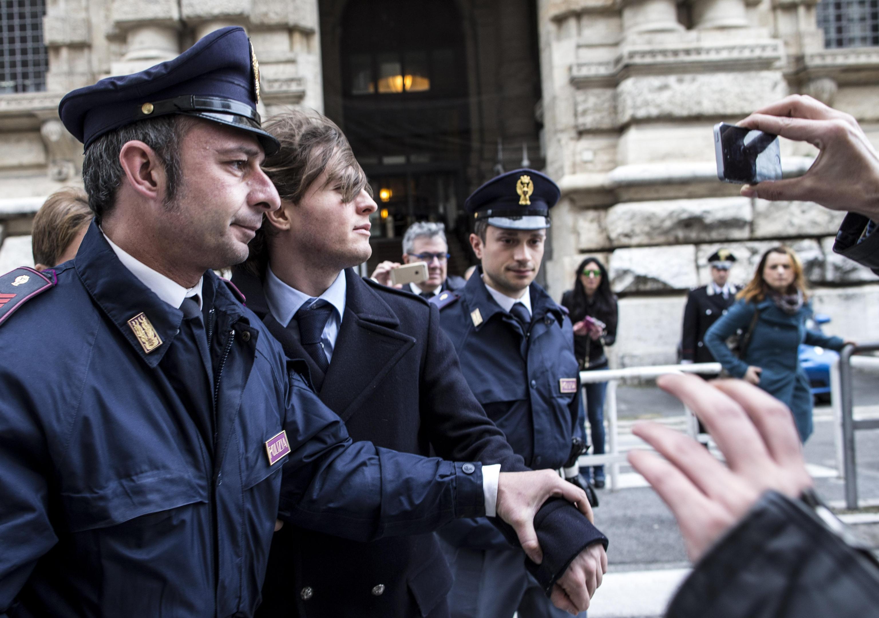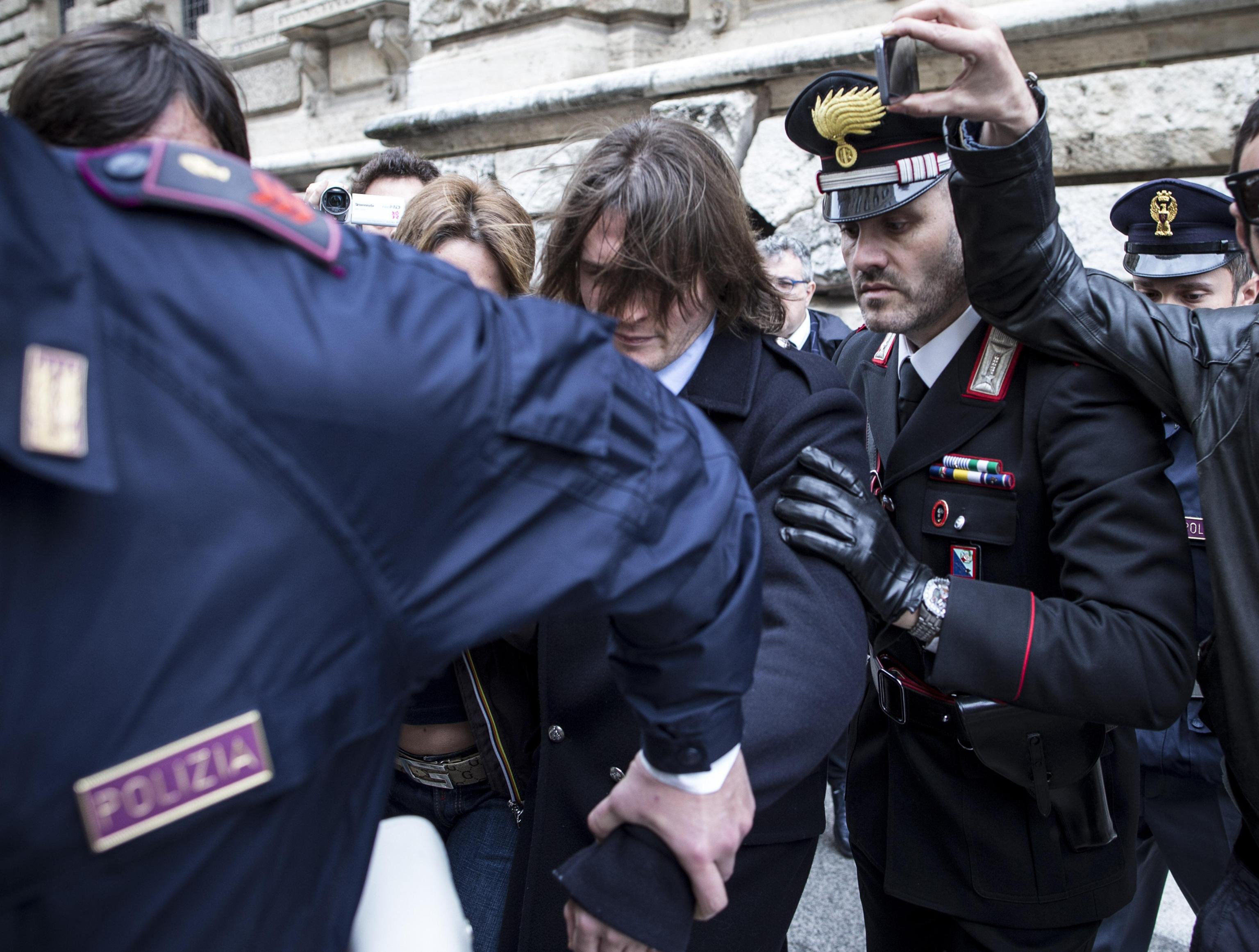 Le foto di Sollecito che lascia la Cassazione (foto Ansa).