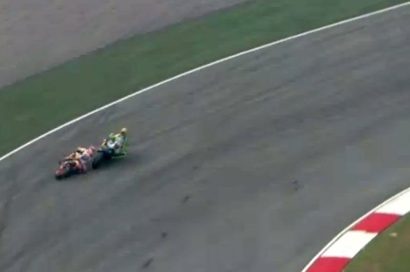 SEPANG – C’è chi dice che Valentino Rossi ha sbagliato, chi sostiene che Marc Marquez l’ha provocato e lui ha giustamente reagito, c’è chi dice che Rossi ha buttato via il Mondiale della MotoGp e c’è chi dice chi parla apertamente di complotto spagnolo (Marquez avrebbe favorito Jorge Lorenzo, avversario di Rossi nella corsa al titolo). Persino il Coni si è schierato ufficialmente, parlando di “mondiale falsato”. Comunque la si voglia vedere, la gara di Sepang (Gran Premio della Malesia) ha lasciato uno strascico di polemiche che probabilmente nemmeno l’ultima corsa dell’anno (a Valencia) riuscirà a spegnere. Certo, il contatto c’è stato e Valentino (che avesse ragione o no) ha reagito con troppa veemenza.