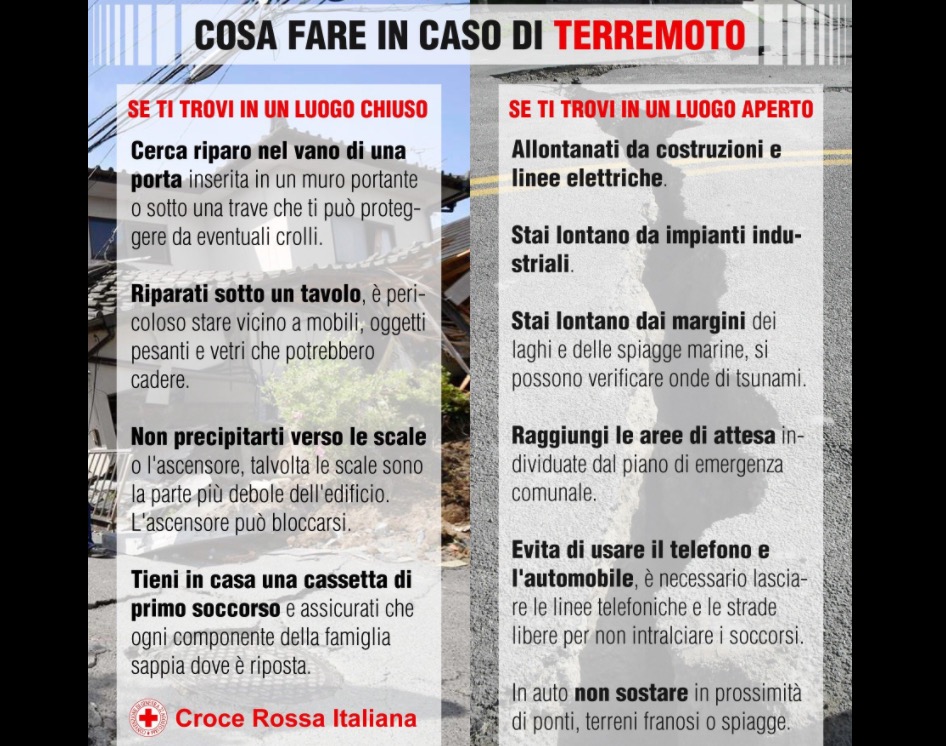 ROMA – Cosa fare in caso di terremoto? Risponde la Croce Rossa Italiana nel suo vademecum che rimpalla sul web dopo le continue scosse che negli ultimi mesi hanno colpito il Centro Italia.