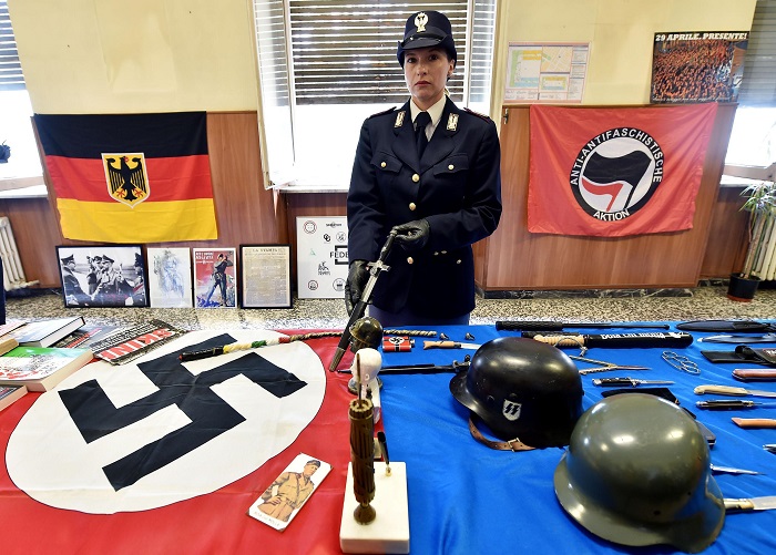 TORINO – Materiale con simboli fascisti e nazisti, coltelli a scatto, mazze, tirapugni, un machete, manganelli telescopici, pistole giocattolo e fucili per soft air sono stati sequestrati dalla Digos di Torino nella sede cittadina del gruppo skin Legio Subalpina, inaugurata lo scorso 2 marzo, nelle abitazioni di una decina di militanti di Forza Nuova e del gruppo di estrema destra di Ivrea (Torino) Rebel Firm.