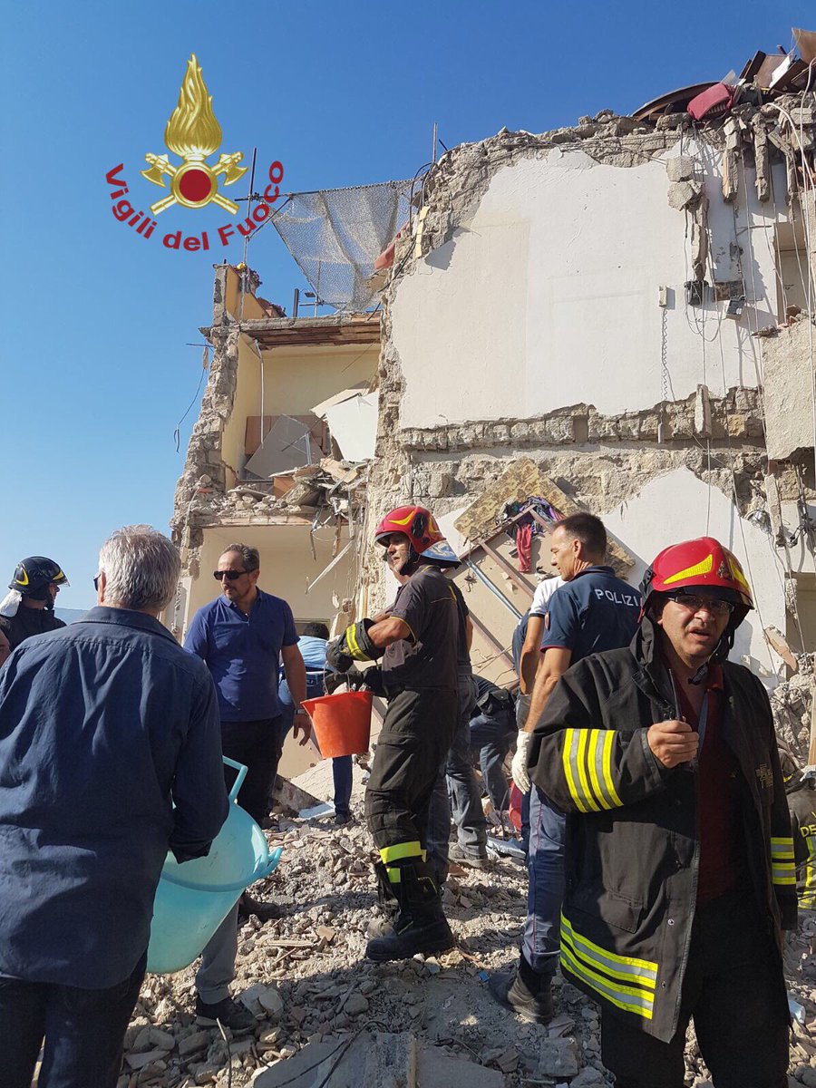 I soccorritori hanno cercato di aprire un varco tra le macerie per calare uno di essi. Un lavoro difficilissimo che stanno facendo sotto un sole cocente. Sulle macerie sono stati portati dei cani che fino a questo momento non hanno avvertito la presenza di persone. Poco fa è stato disposto anche l’utilizzo di un drone.