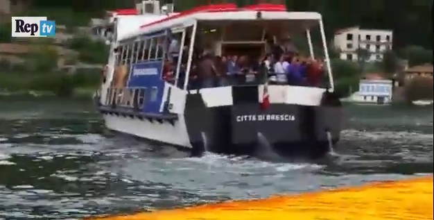 BRESCIA – Un battello fa manovra e sfiora la passerella di Christo nel lago d’Iseo. “Allontanatevi”, hanno gridato gli addetti alla sicurezza mentre il battello si avvicinava pericolosamente all’opera dell’artista bulgaro The Floating Piers, inaugurata il 19 giugno.