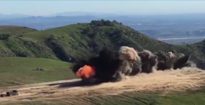 Così operano i militari statunitensi per fare in modo che non vengano bloccati in un campo minato. L’operazione prevede il lancio di un cavo attraverso il territorio che si pensa disseminato di esplosivi. Nelle immagini realizzate dall’11th Marine Expeditionary Unit e la Japan Ground Self-Defense Force in Giappone fanno esplodere un cavo confezionato con quasi 750 kg di esplosivo rendendo così il terreno sicuro dopo la sua deflagrazione.