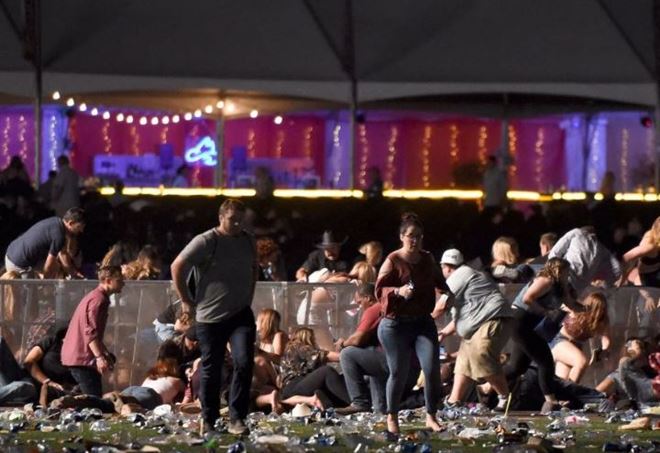 I fatti finora noti: al Mandalay Bay Casino, uno dei primissimi alberghi che dà il via alla Strip, era in corso un Festival di tre giorni di musica country, il Route 91 Harvest che ha richiamato circa 40mila persone. Intorno alle 10 e 30 (da noi era l’alba) i bagliori provenienti dal 32° piano fanno pensare in un primo momento a fuochi di artificio: ben presto è chiaro che sono spari di armi automatiche, un cecchino dall’alto sta sparando sulla folla. Il cecchino tira anche sui poliziotti intervenuti, alcuni video ora all’esame degli inquirenti fanno pensare a sventagliate di mitra.