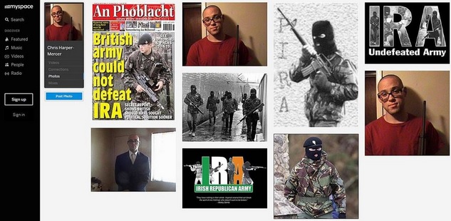 L’identikit del killer arriva dai suoi profili sui social network. Su MySpace, Harper Mercer indossa la divisa dell’Ira, compresa di passamontagna, e pistola alla mano incita l’esercito. Sul sito di incontri Spiritual Passion si firma “ironcross45” e mette ben in chiaro di avere 26 anni e di “non amare le organizzazioni religiose“. Con lo stesso nickname, Iron Cross o Croce di Ferro, simbolo del nazismo, ha acquistato su un sito un elmetto delle SS oltre 2 anni fa commentandone la buona fattura e raccomandandolo caldamente.