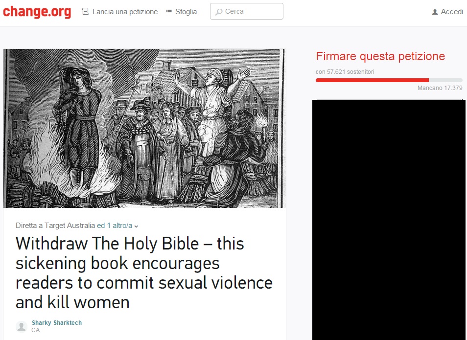 “Ritirate la Sacra Bibbia, oltre 40mila hanno firmato”.