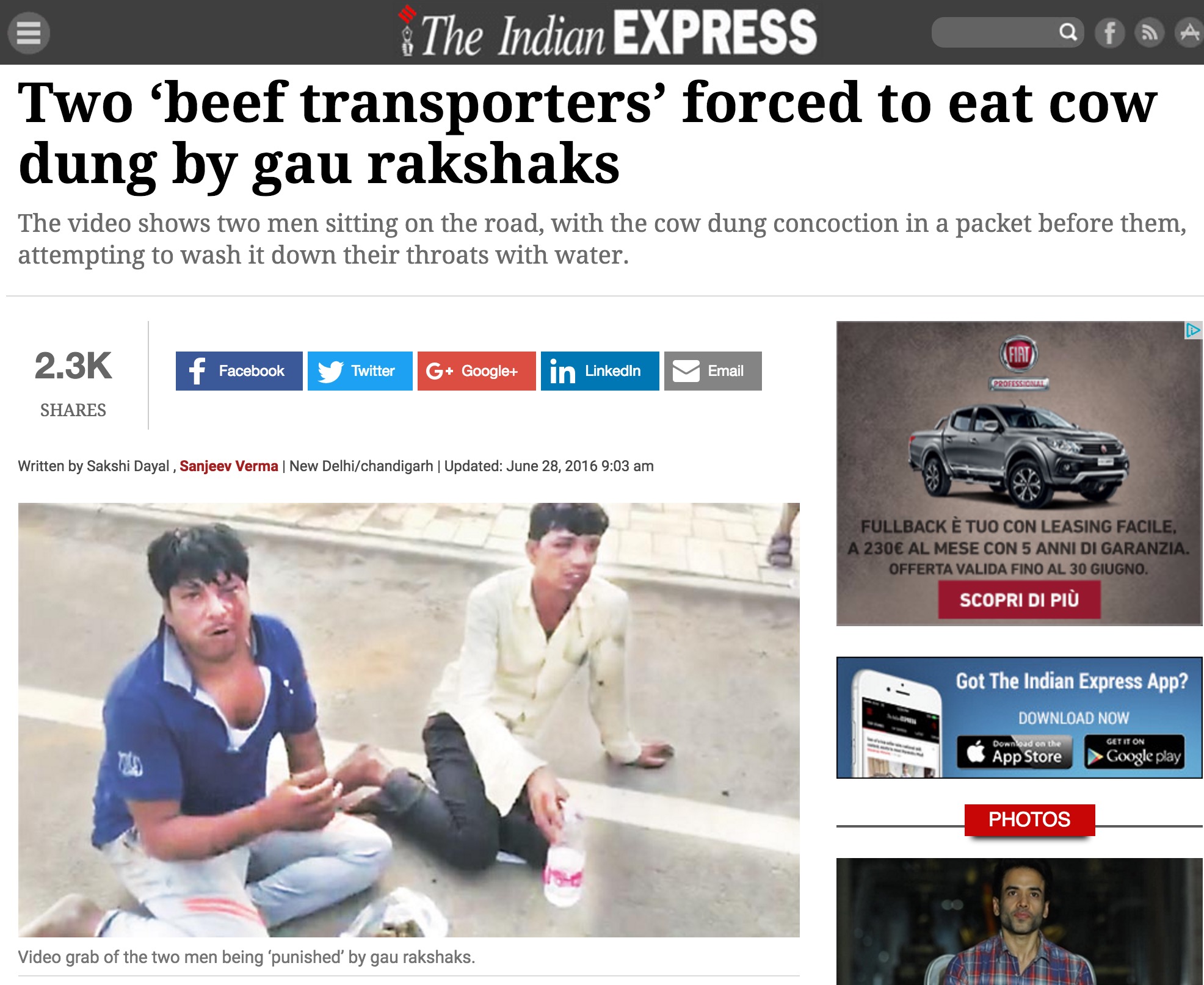 L’episodio, che ha coinvolto due indiani di nome Rizwan e Mukhtiar, è accaduto il 10 giugno, ma è venuto alla luce solo ora, dopo la diffusione di un video, e dopo che tre militanti del movimento indù Gau Rakshak Dal (Grd) che difende la sacralità delle mucche, sono stati feriti a colpi d’arma da fuoco nello Stato di Haryana, nel nord dell’India, non lontano dal confine col Pakistan.