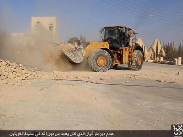HOMSĀ – La barbarie di Isis continua a prendere di mira i monumenti della Siria: stavolta i fondamentalisti del sedicente Stato IslamicoĀ hanno distrutto il monastero cattolico di Mar Elian a Qaryqatayn, vicino a Homs in Siria, costruito nel quinto secolo dopo Cristo. La stessa Isis ha diffuso un video con i bulldozer al lavoro tra le rovine.