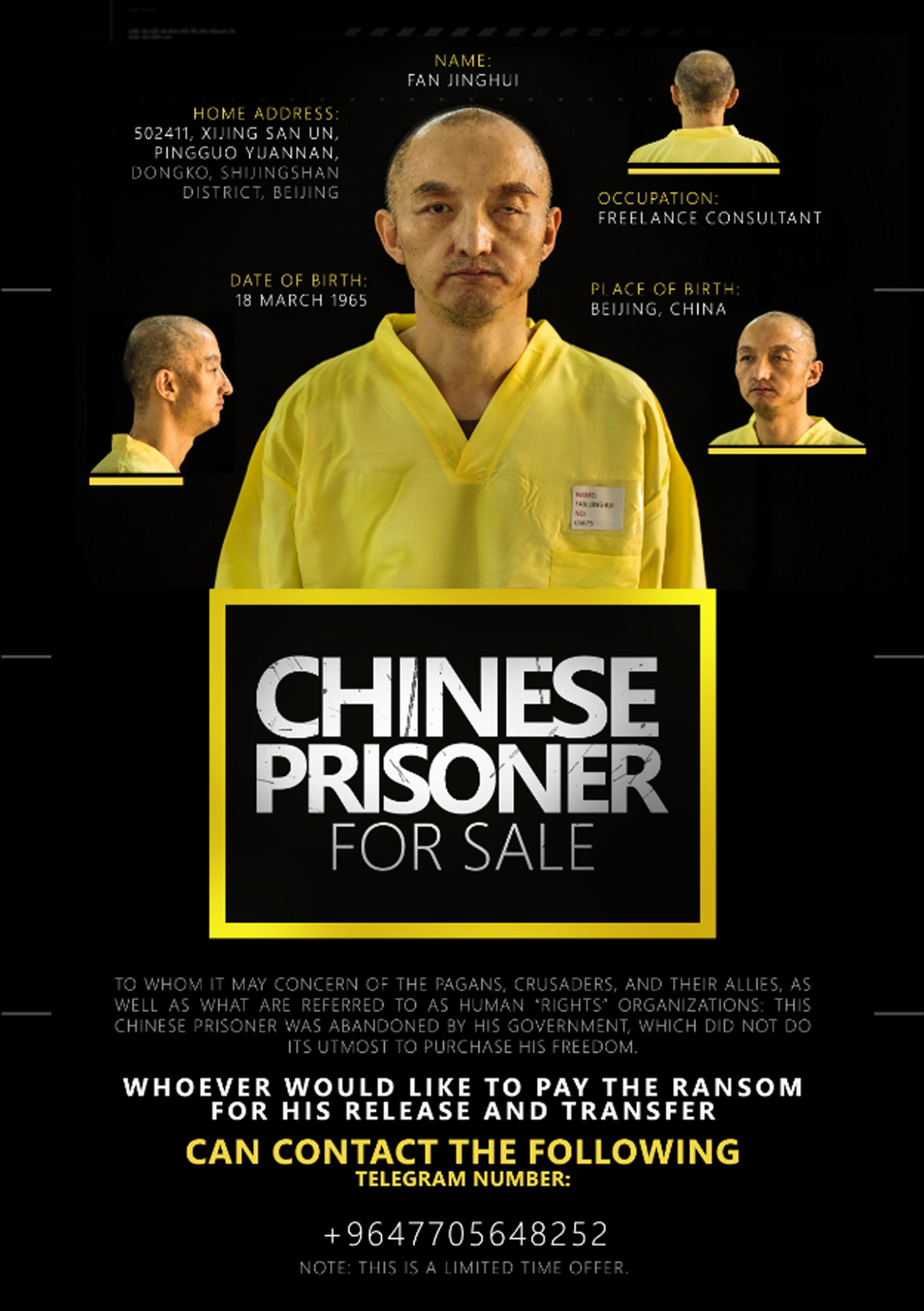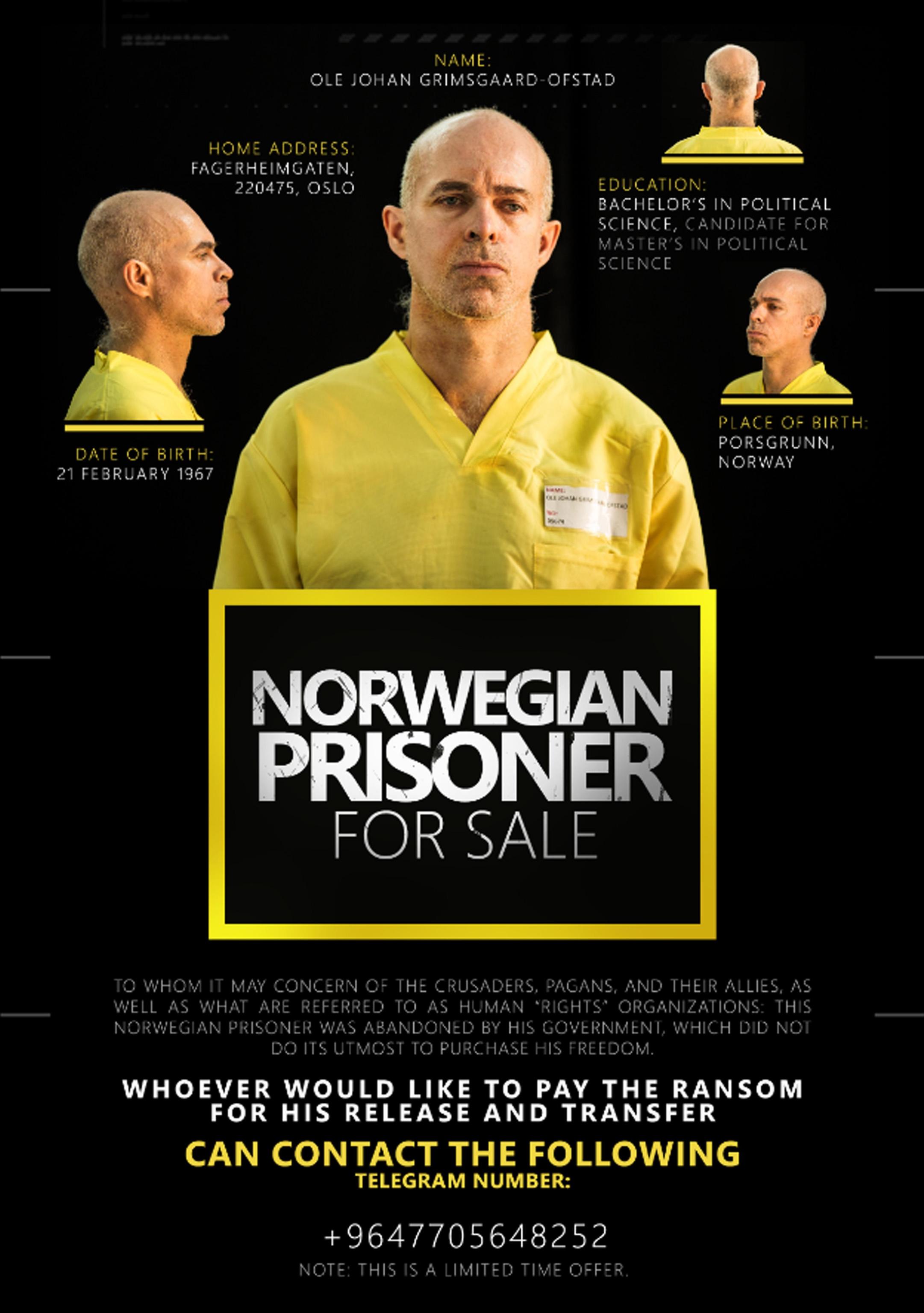 Accanto alle foto (di fronte, profilo, tre-quarti e di nuca) si precisano le generalità degli ostaggi. Si tratta di Ole Johan Grimsgaard Ofstad, 48 anni, nato a Porsgrunn (Norvegia), “laureato in scienze politiche” e Fan Jinghui, 50, di Pechino, “consulente freelance”. Di entrambi viene anche dato un indirizzo dettagliato.