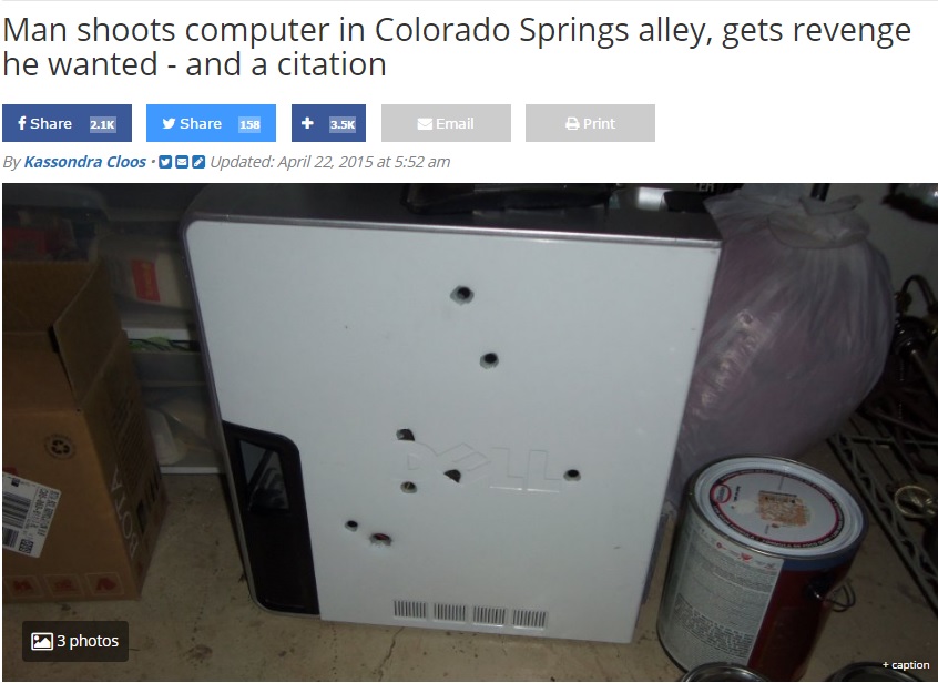 A raccontare la bizzarra storia è il sito Gazzette.com, che in toni decisamente ironici e divertenti, racconta l’omicidio, se così possiamo chiamarlo, del povero computer Dell. Pare infatti che Hinch fosse stanco di quel pc che non funzionava e continuava a bloccarsi. Così stanco da arrivare ad un punto di non ritorno: giustiziarlo a colpi di pistola, spiega Jeff Strossner della polizia: