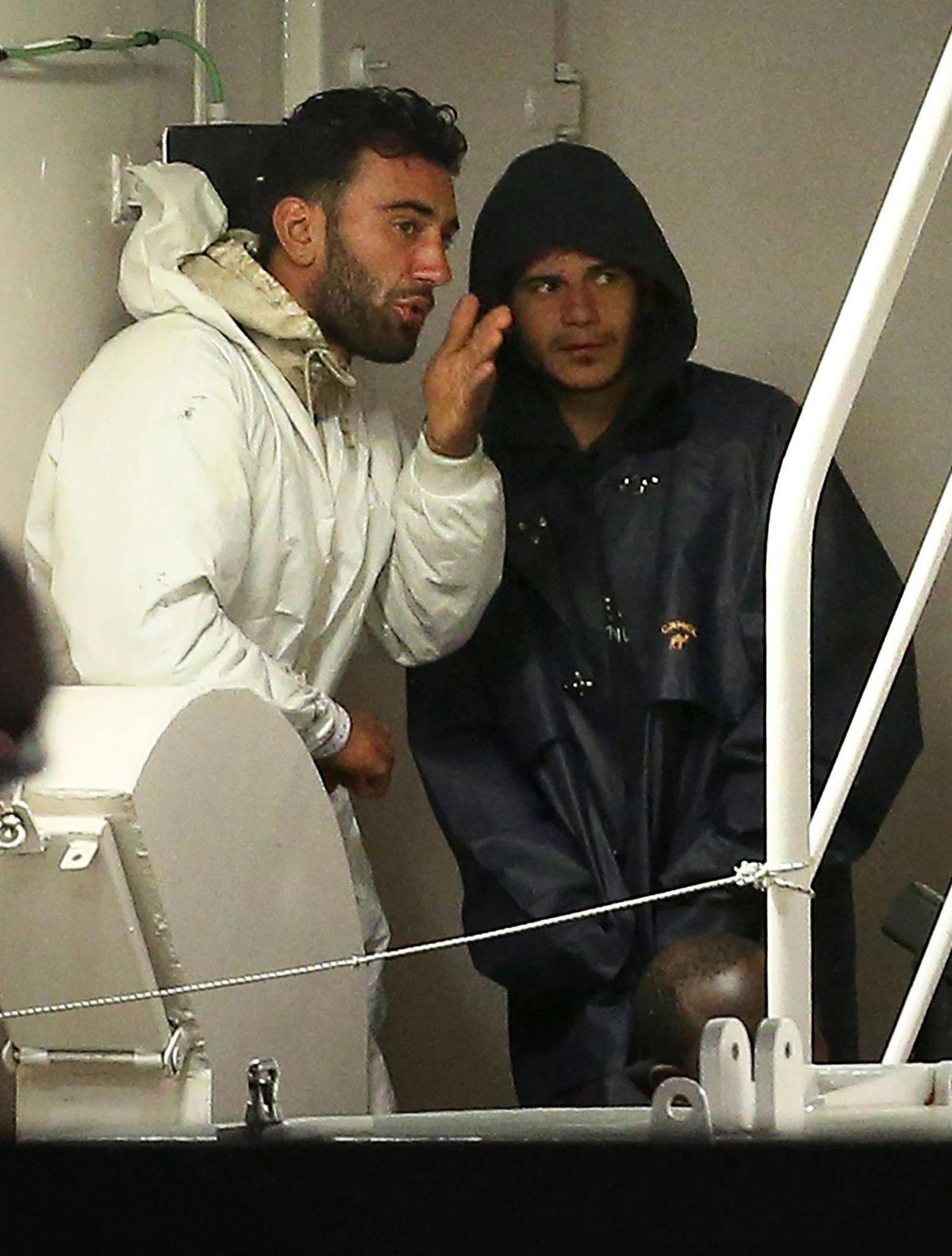 Dall’Ansa arrivano le foto di Mohamed Alì Malek, uno dei due scafisti responsabili del disastro di sabato scorso nel Canale di Sicilia. Lui è quello vestito di bianco, mentre quello incappucciato è l’altro scafista, il siriano di 25 anni Mahmud Bikhit. C’era Malek al timone al momento dell’avvistamento del mercantile ed è stato lui a causare la collisione. Nelle foto, a bordo della Gregoretti, finge tra un sorriso e l’altro di essere un migrante come tutti gli altri. Era il loro aguzzino, quello che ne ha fatti morire 850.