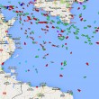 Nella cartina tratta da www.marinetraffic.com le imbarcazioni presenti nel mediterraneo centrale