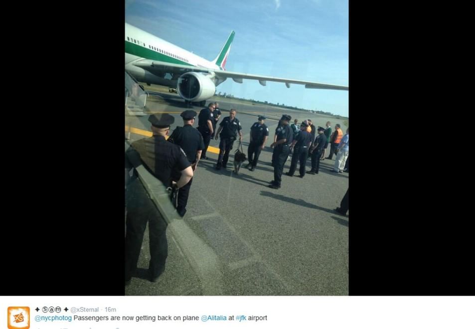Il volo Az604 era appena arrivato da Milano Malpensa, carico di molti turisti italiani e qualche connazionale arrivato a New York per motivi di lavoro. Prima ancora che l’aereo arrivasse al punto di sbarco è stato fermato sulla pista e immediatamente circondato da una decina di auto della polizia e dai mezzi delle squadre di emergenza. Il comandante ha quindi dato l’ordine di evacuazione, senza però indicare – raccontano i testimoni – il motivo.