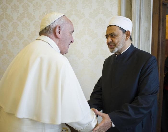 Papa Francesco incontra un imam (foto d'archivio Ansa)