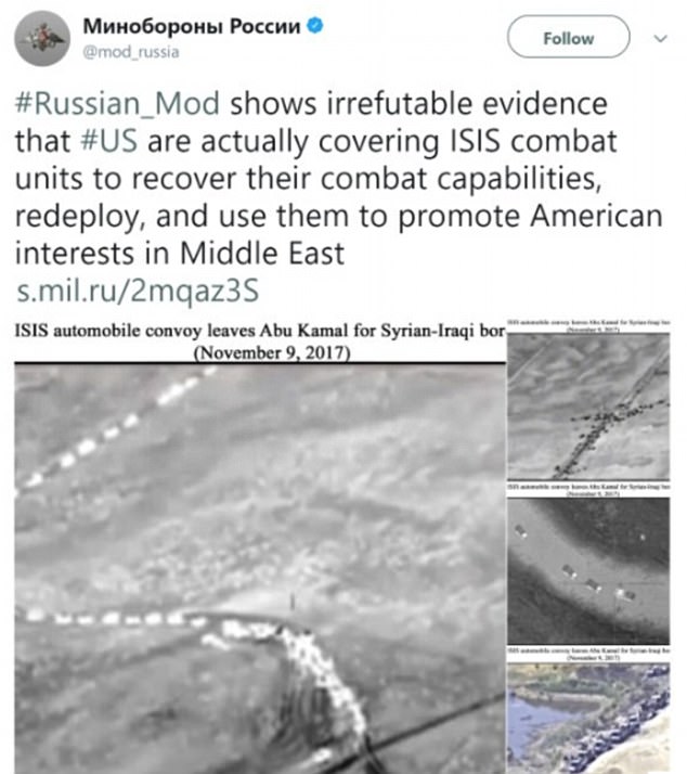 “La scorsa settimana, la SyrianArabArmy sostenuta dalle forze aerospaziali russe, ha liberato AbuKamal. L’operazione ha accertato la cooperazione diretta e il sostegno offerto dalla coalizione guidata dagli Stati Uniti ai terroristi Isis”, scriveva il governo russo sul social media.