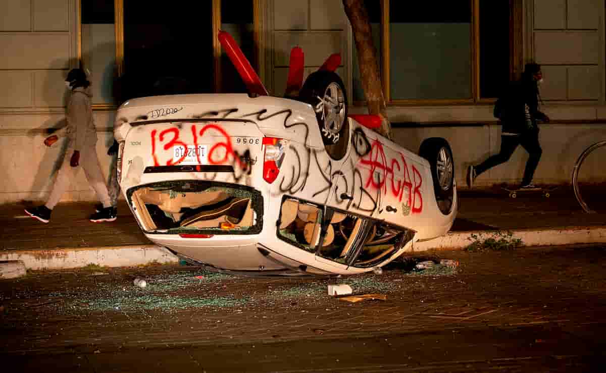 Le immagini di tv locali mostrano poliziotti scontrarsi con alcuni dimostranti che avevano vandalizzato l’auto di una pattuglia. Si vedono anche alcuni manifestanti scagliare detriti e un bidone della spazzatura durante la zuffa con le forze dell’ordine. La protesta ha bloccato anche una superstrada nel centro della città.