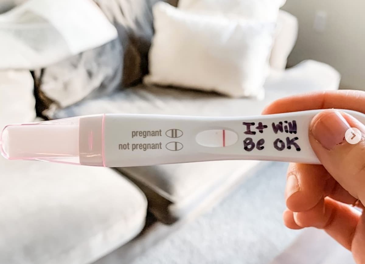 La foto postata da Tara Engerlberg con il risultato negativo del test di gravidanza (Foto Instagram)