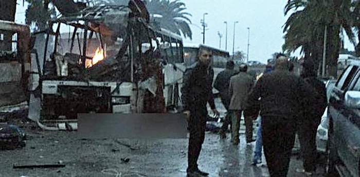 TUNISI – Forte esplosione a Tunisi, nella centrale Avenue Mohamed V, nel pressi dell’ex sede del partito di Ben Ali RCD. A saltare in aria è stato un bus che trasportava uomini della guardia presidenziale. Stando ai primi riscontri i morti sarebbero almeno 14 e decine i feriti.