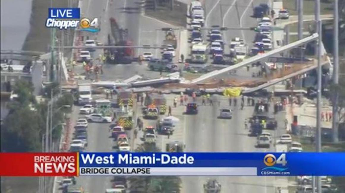 MIAMI –ย Un ponte pedonale รจ crollato a Miami collassando su una strada a sei corsie e schiacciando alcune delle auto che erano in transito.