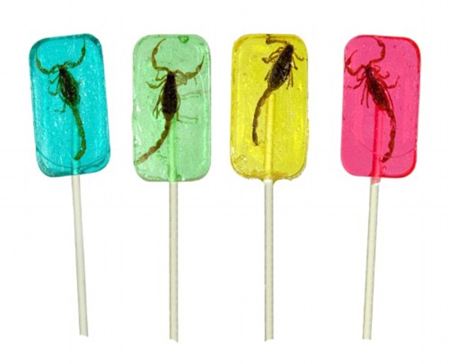 Due, tra i prodotti messi in vendita, sono probabilmente i più bizzarri: la tarantola precotta, in scatola, assolutamente commestibile, al prezzo di 18,00 euro ma gli aracnofobici stiano alla larga… E che dire dei lecca-lecca dai colori vivaci che racchiudono uno scorpione, seppure commestibile? In vendita a 5,00 euro e in regalo c’è anche il pungiglione.