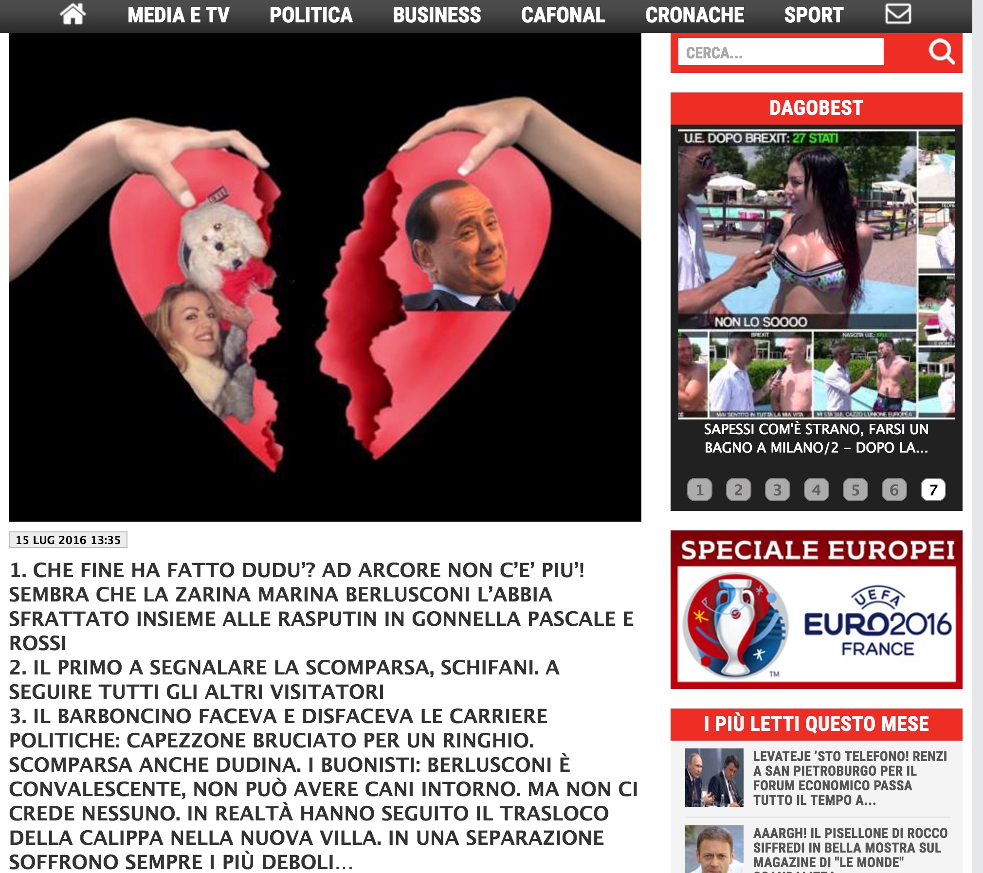 3. IL BARBONCINO FACEVA E DISFACEVA LE CARRIERE POLITICHE: CAPEZZONE BRUCIATO PER UN RINGHIO. SCOMPARSA ANCHE DUDINA. I BUONISTI: BERLUSCONI È CONVALESCENTE, NON PUÒ AVERE CANI INTORNO. MA NON CI CREDE NESSUNO. IN REALTÀ HANNO SEGUITO IL TRASLOCO DELLA CALIPPA NELLA NUOVA VILLA. IN UNA SEPARAZIONE SOFFRONO SEMPRE I PIÙ DEBOLI…