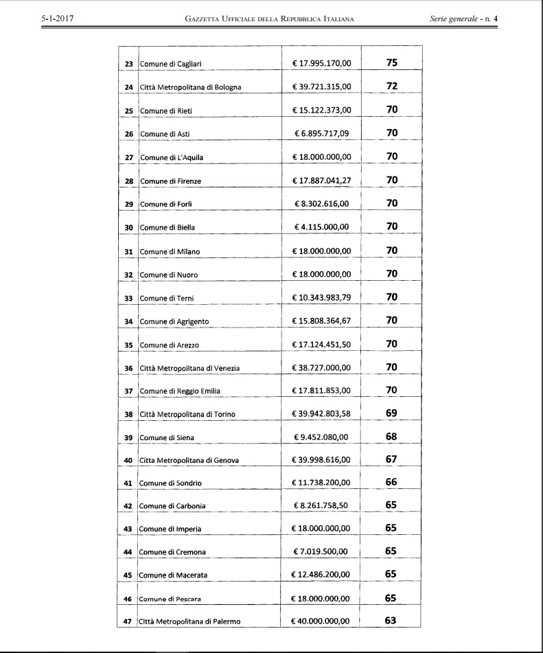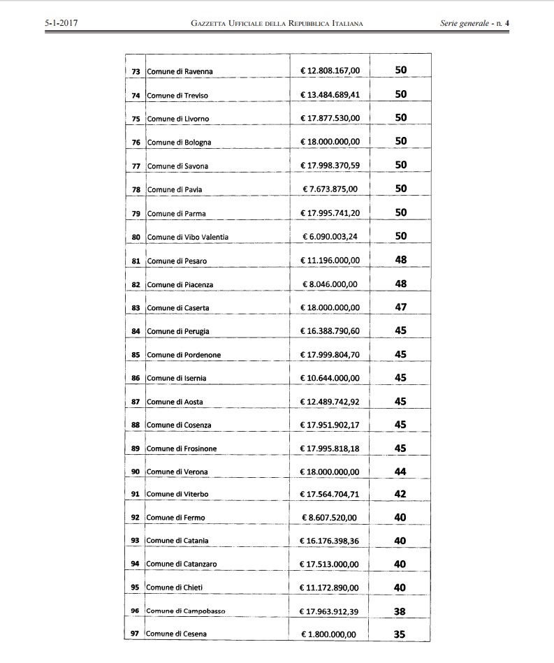 - Comune di Ascoli Piceno – 18 milioni – 76