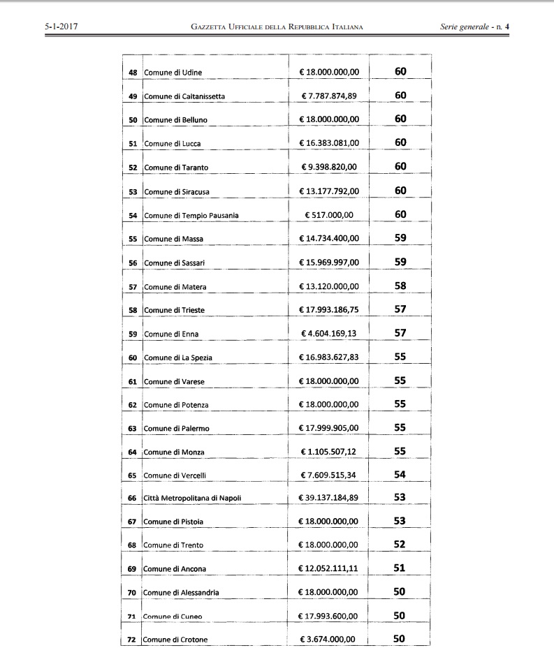 - Comune di Napoli – 17,97 milioni – 77