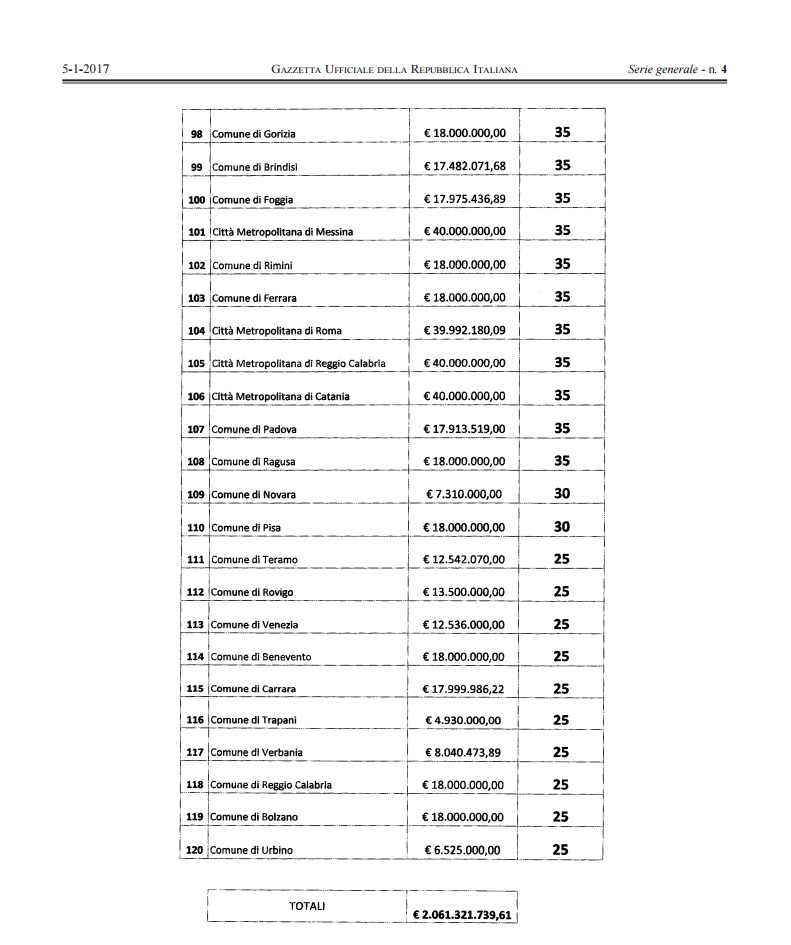 - Comune di Andria – 17,99 milioni – 80