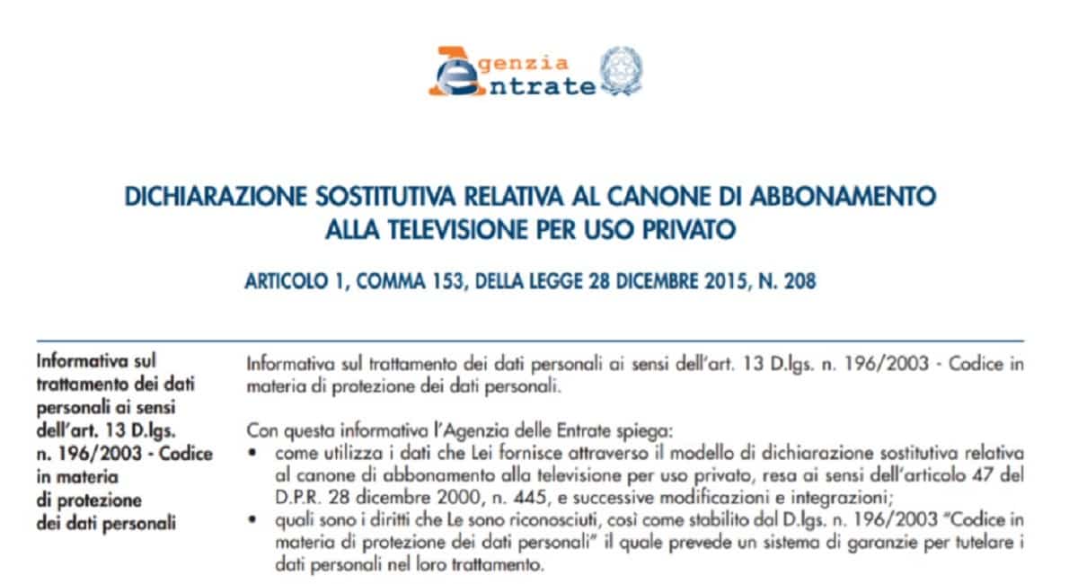 “i contribuenti titolari di un’utenza elettrica per uso domestico residenziale possono certificare la non detenzione, in nessuna delle abitazioni dove è attivata l’utenza elettrica ad essi intestata, di un ulteriore apparecchio televisivo oltre a quello per cui è stata precedentemente presentata una denunzia di cessazione dell’abbonamento televisivo per suggellamento, da parte del titolare o dei loro familiari. Il modello può essere utilizzato anche da un erede per dichiarare che nell’abitazione in cui l’utenza elettrica è ancora temporaneamente intestata a un soggetto deceduto, non è presente alcun apparecchio TV”.