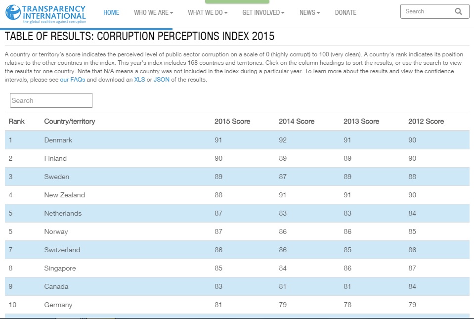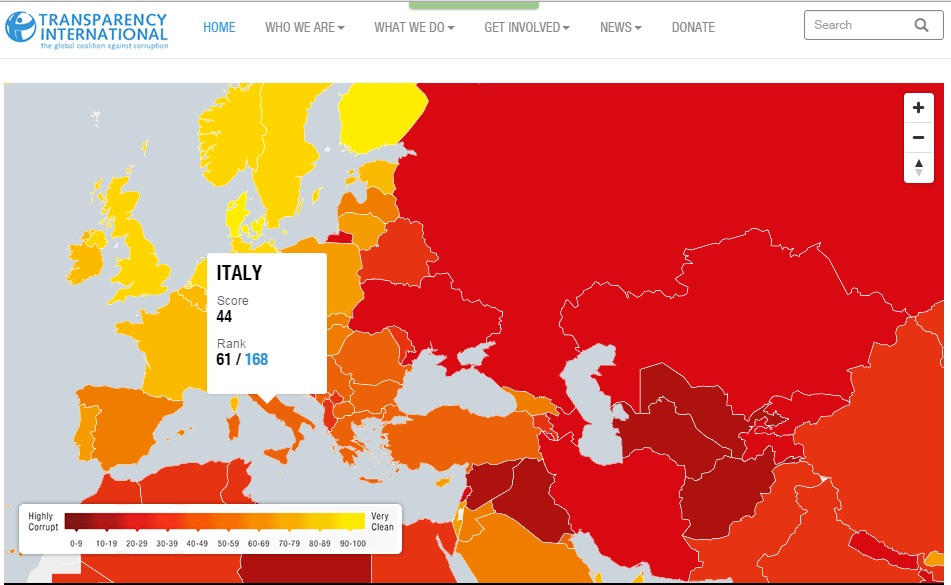 ROMA – Classifica della corruzione: peggio dell’Italia in Europa c’è solo la Bulgaria. Secondo la classifica stilata da Transparency International, “Corruption perception index 2015”, nella graduatoria che parte dal Paese meno corrotto (la Danimarca, 91 punti su 100) a quello più corrotto (la Somalia, 8 punti su 100), l’Italia si piazza al 61° posto su 168, con 44 punti su 100.