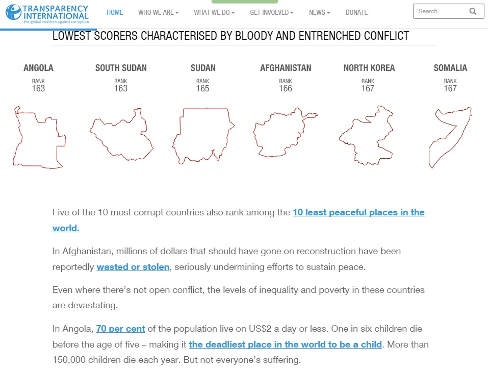 Classifica della corruzione: peggio dell’Italia solo la Bulgaria Classifica della corruzione: i migliori “esportano” la corruzione Classifica della corruzione: i peggiori sono tutti teatri di guerra Classifica della corruzione: dal giallo dei meno corrotti al granata dei più corrotti Classifica della corruzione: dal giallo dei meno corrotti al granata dei più corrotti