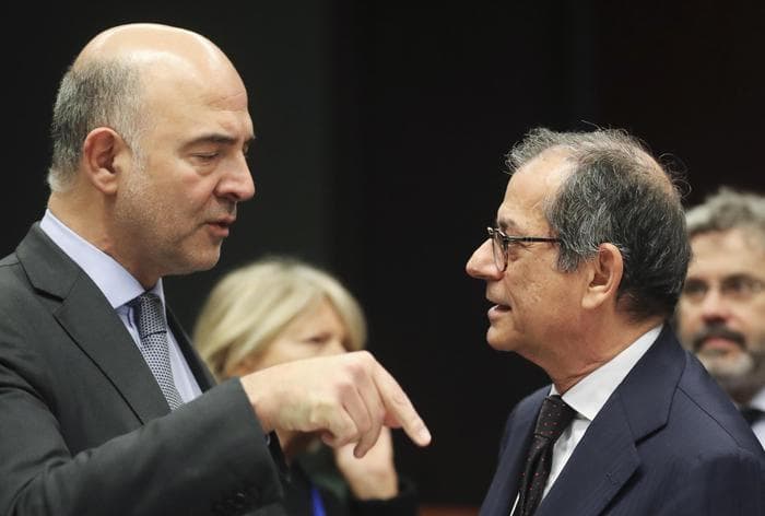 Procedura di infrazione, nella foto Ansa il Commissario Moscovici e il ministro Tria