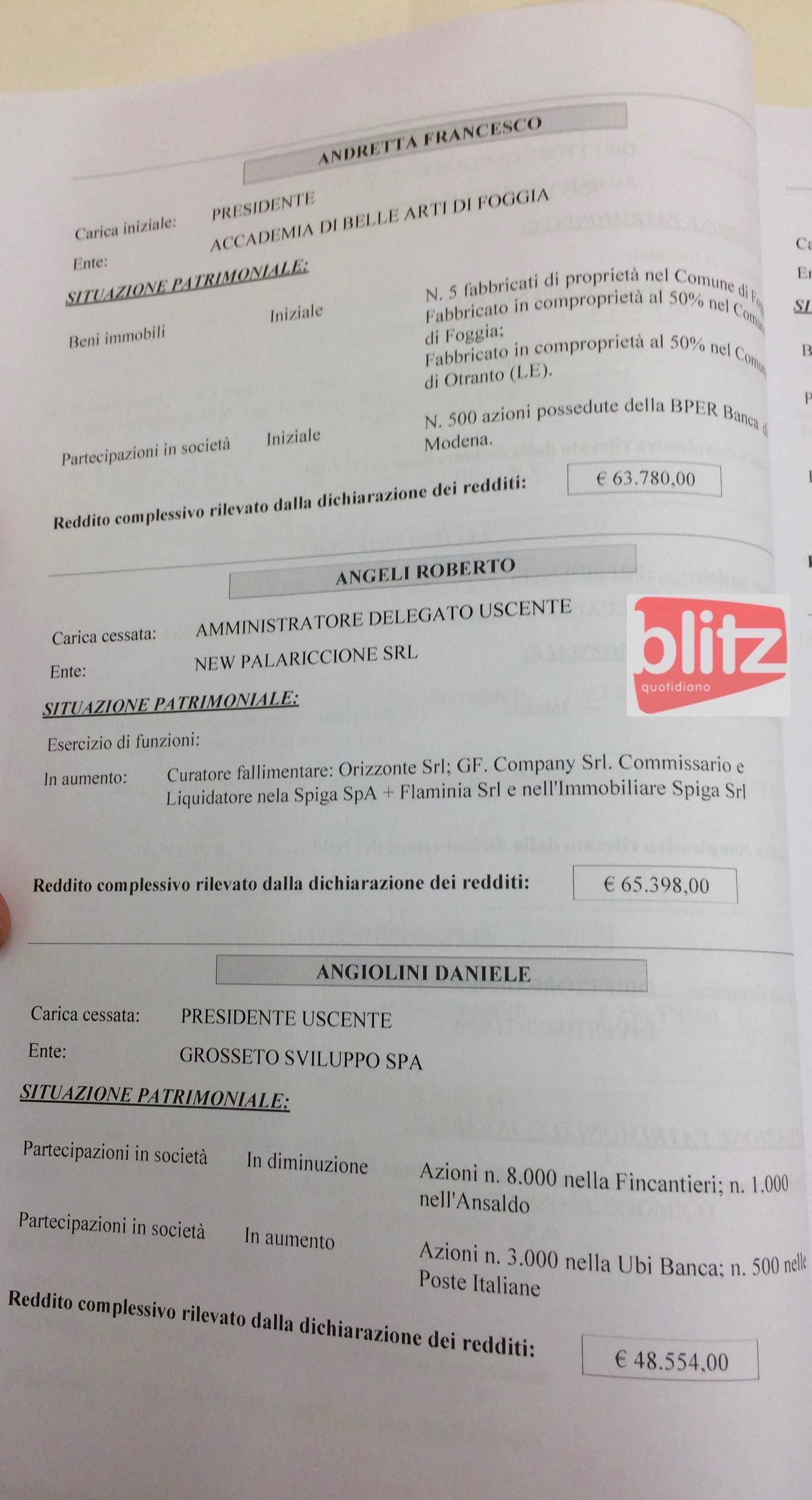 - Roberto Angeli Amministratore delegato uscente New PalaRiccione Srl 65.398