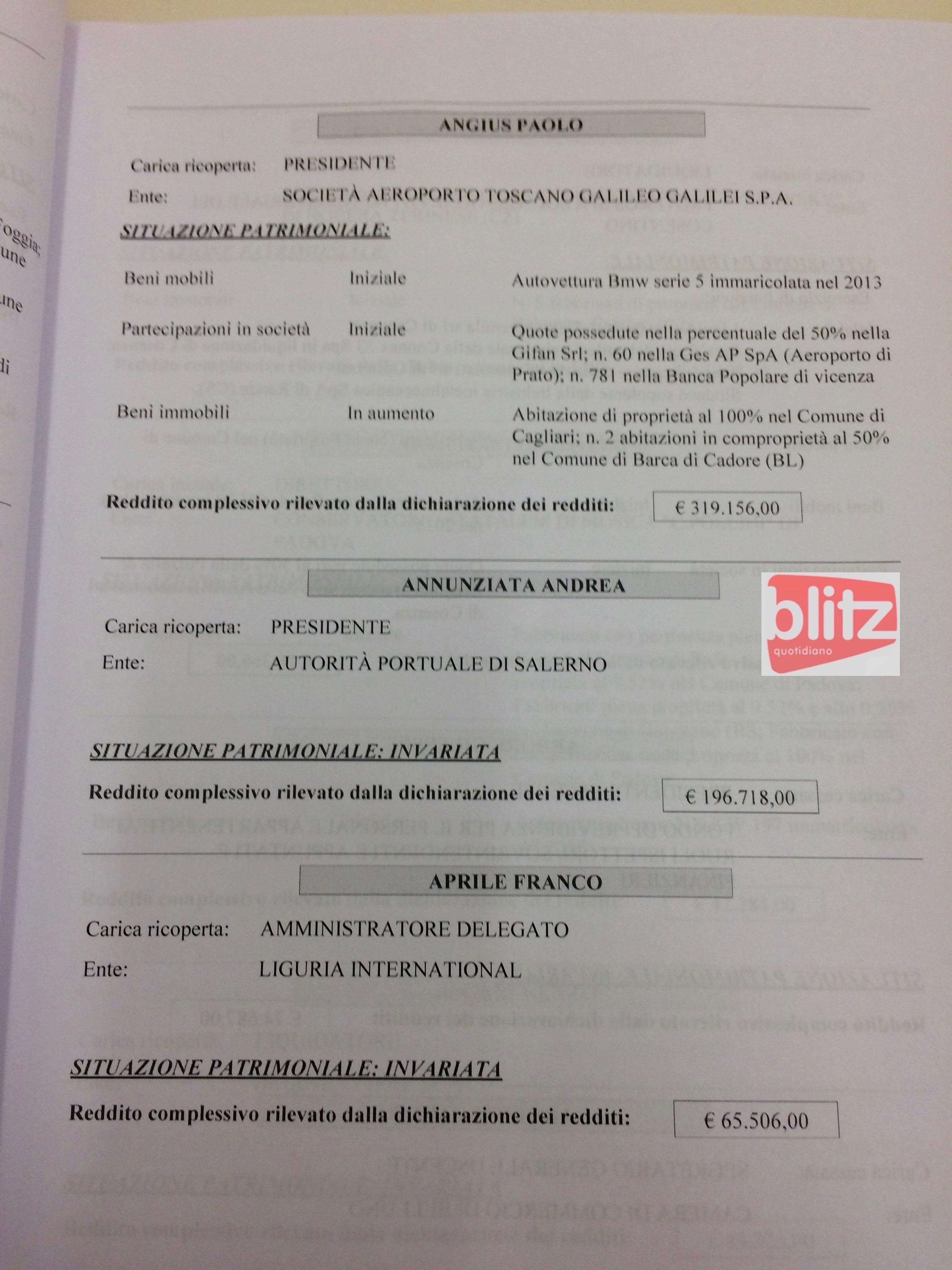 - Paolo Angius Società Aeroporto Toscano “Galileo Galilei” Spa 319.156