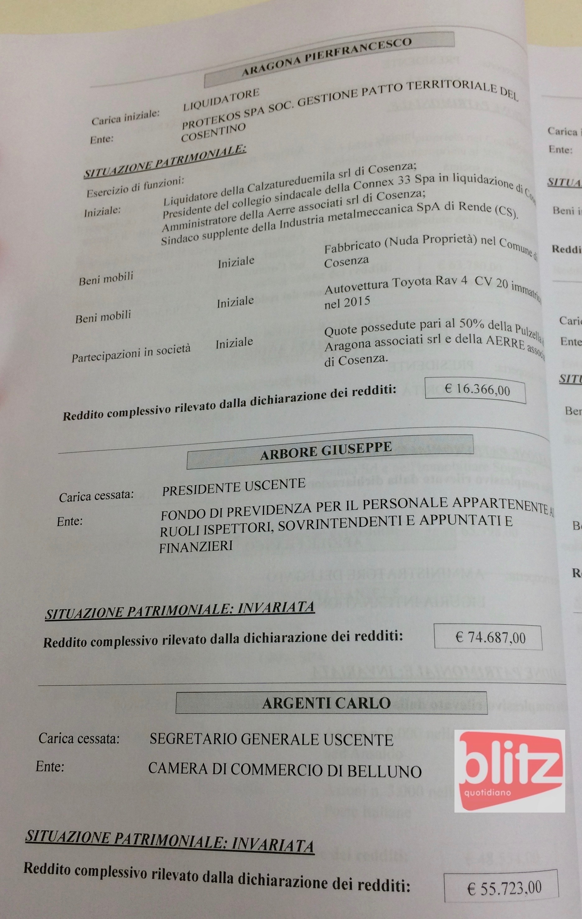 - Carlo Argenti Segretario generale uscente Camera di commercio di Belluno 55.723