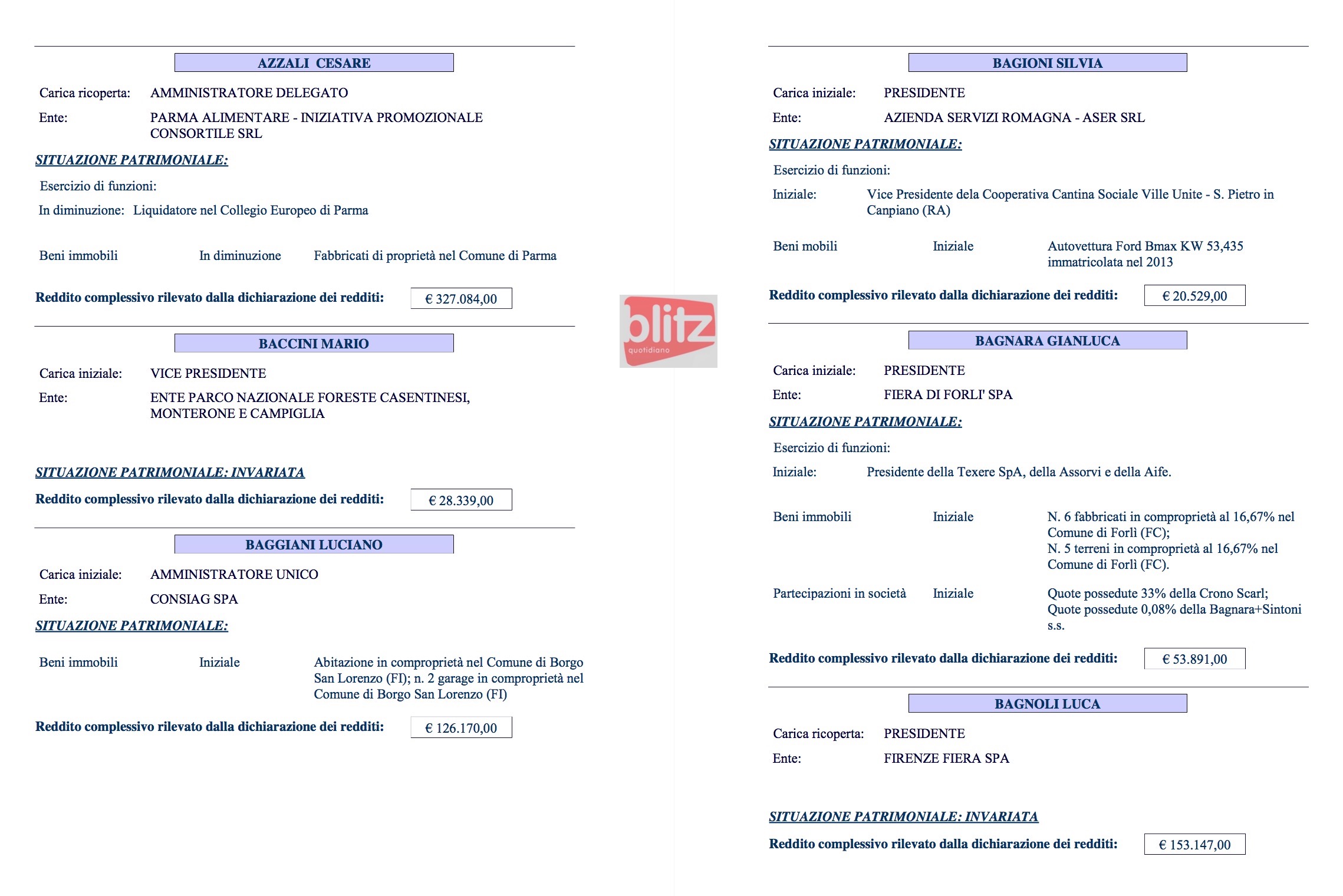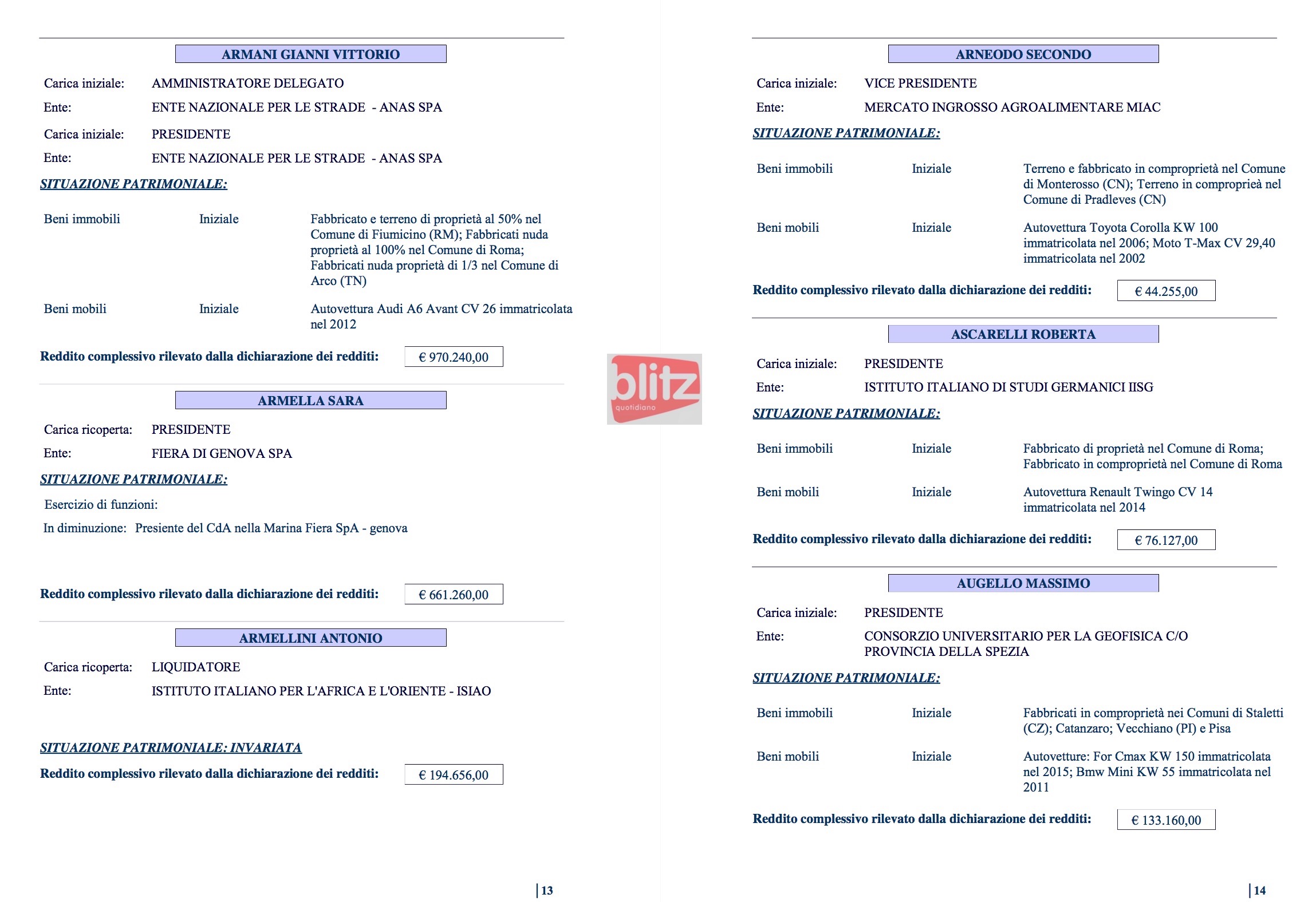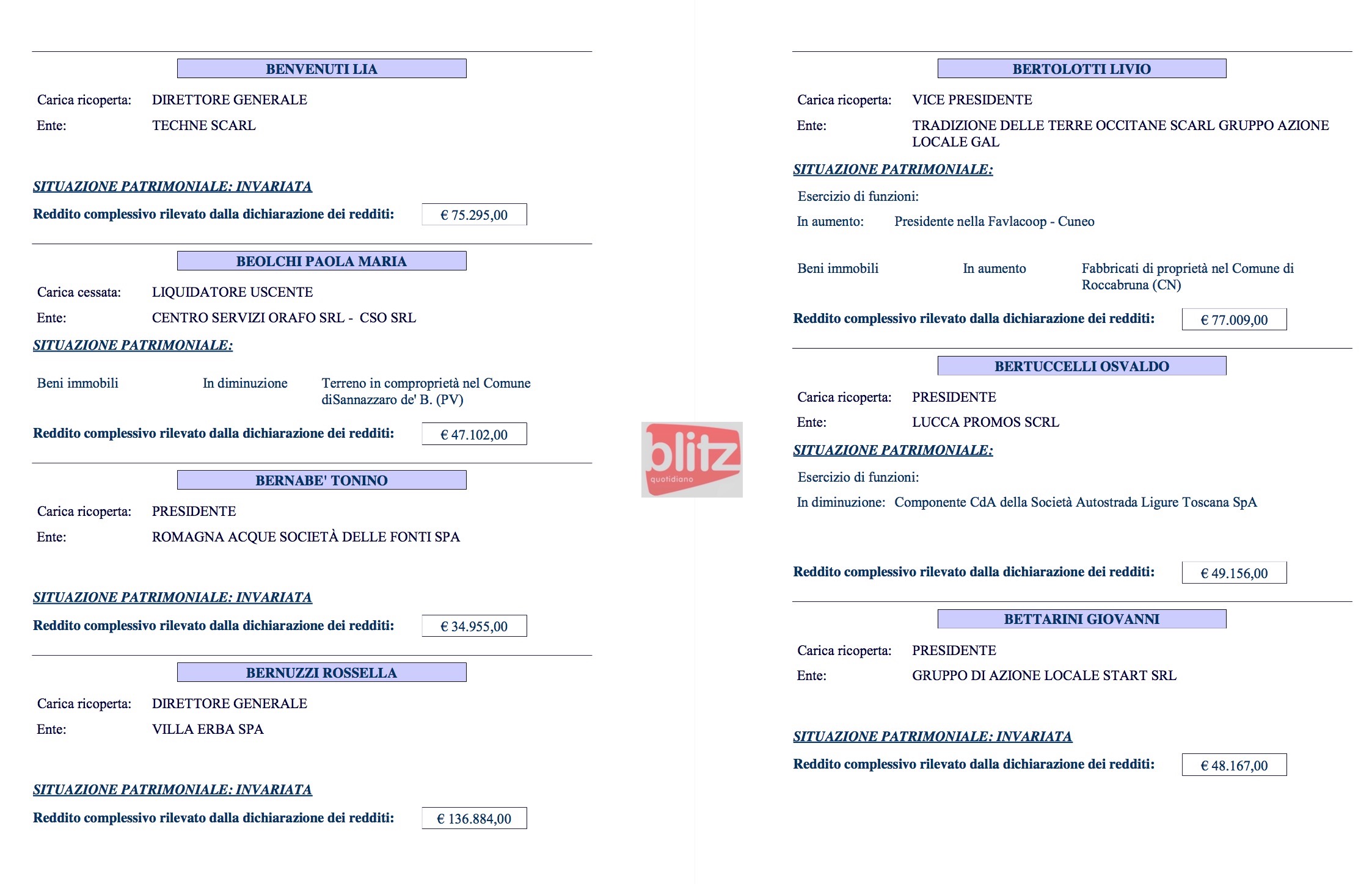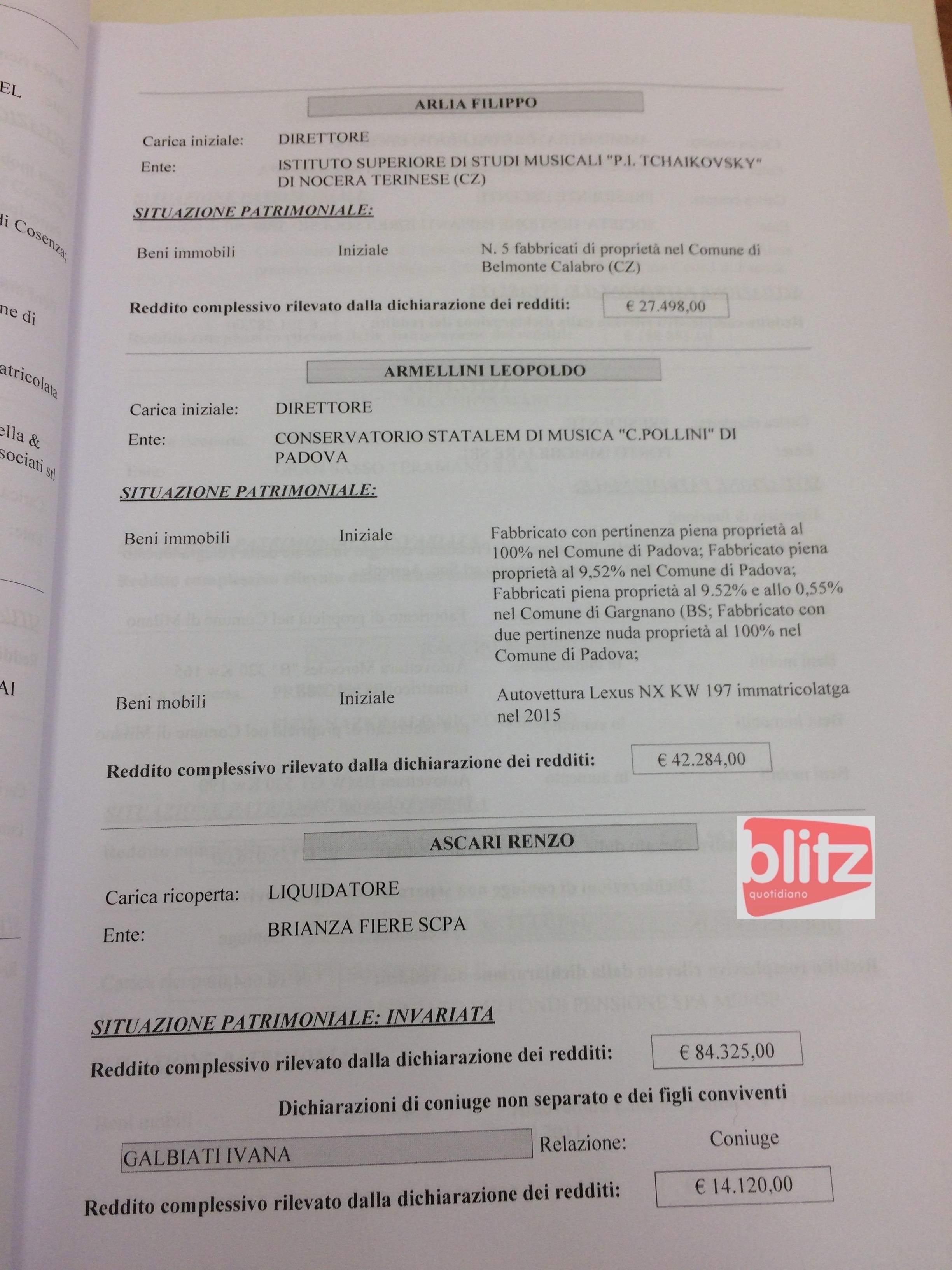 - Renzo Ascari Liquidatore Brianza Fiere spa 84.325 (Coniuge: Ivana Galbiati 14.120)