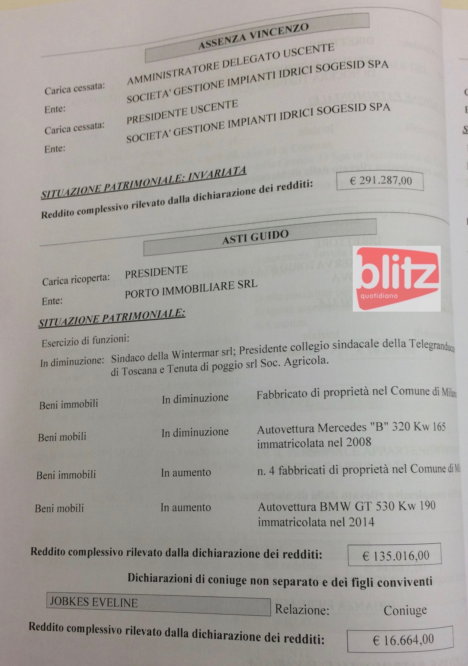- Vincenzo Assenza Amministratore delegato e presidente uscente Società gestione impianti idrici Sogesid spa 291.287