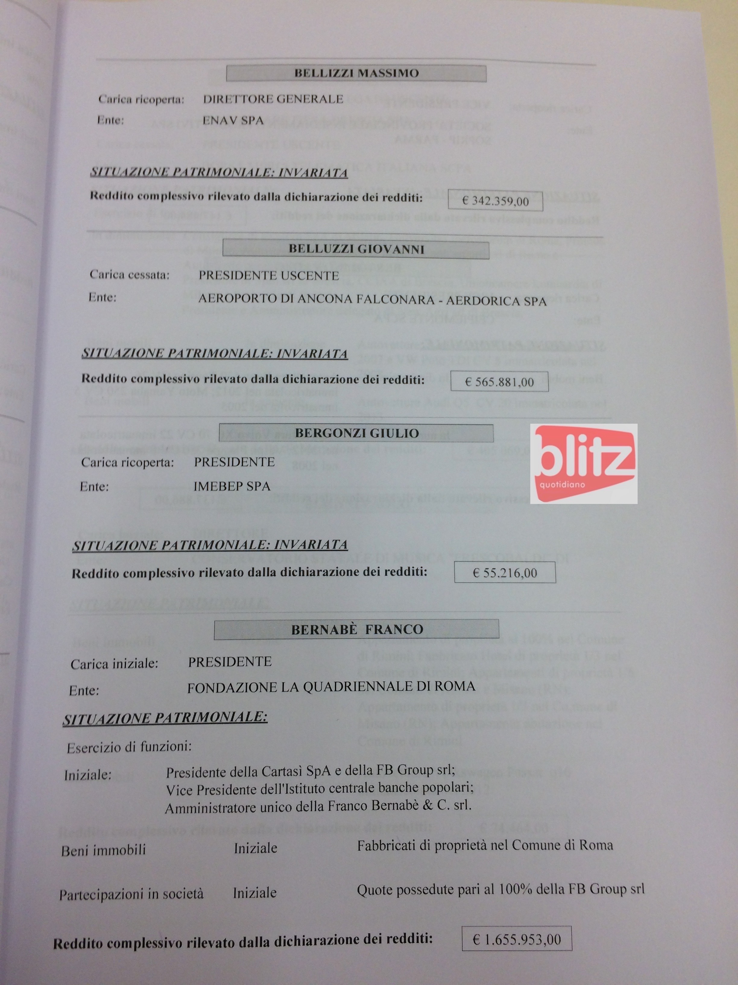 - Giovanni Belluzzi Presidente uscente Aeroporto di Ancona Falconara – Aerdorica Spa 565.881