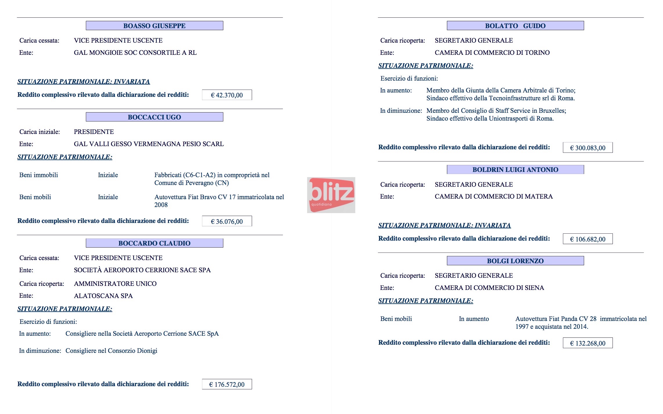 - Claudio Boccardo Vicepresidente uscente Società Aeroporto Cerrione SACE Spa e Amministratore unico Alatoscana Spa 176.572
