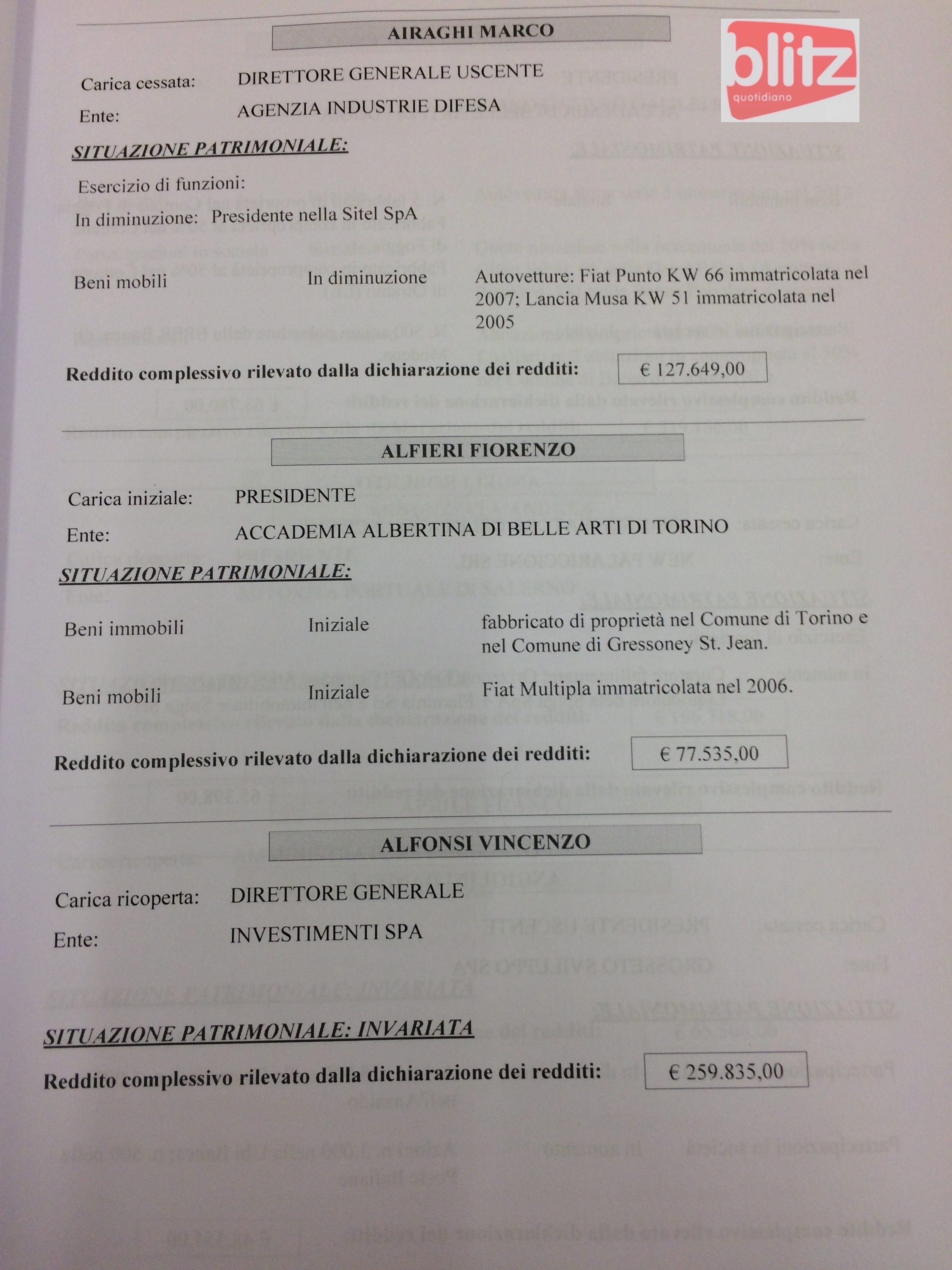 - Vincenzo Alfonsi Direttore generale Investimenti Spa 259.835