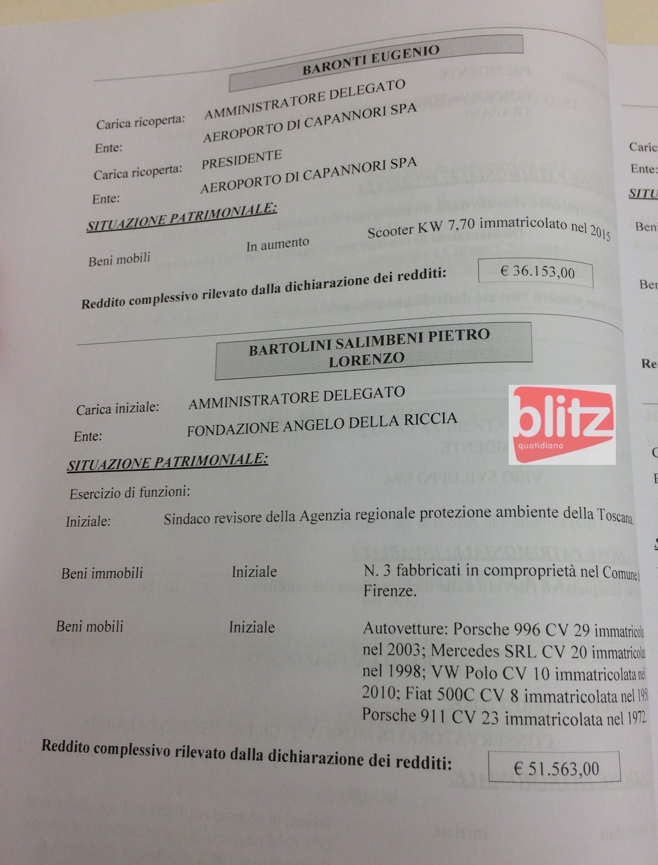 - Eugenio Baronti Amministratore delegato e presidente Aeroporto di Capannori Spa 36.153