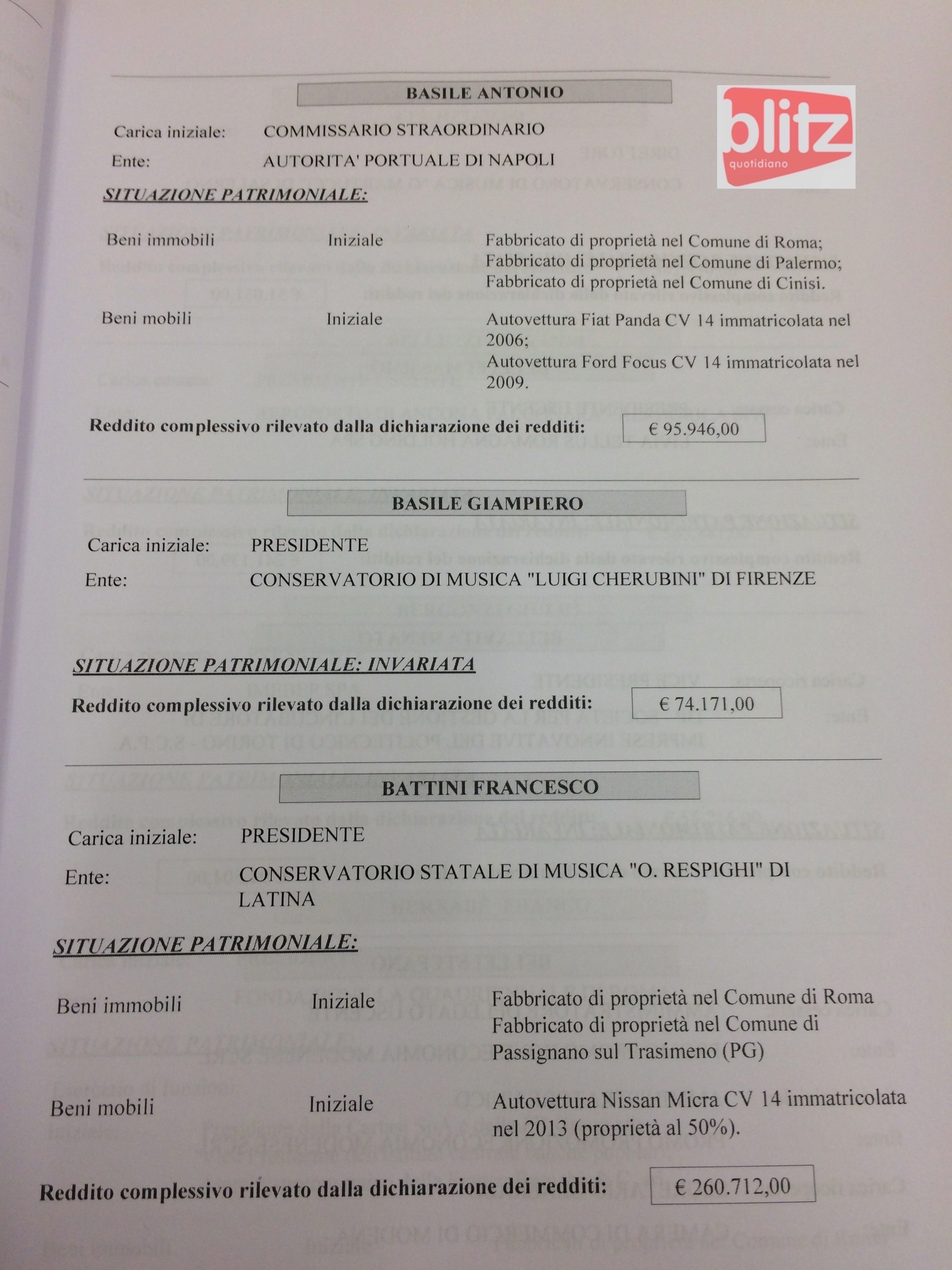 - Antonio Basile Commissario straordinario Autorità Portuale di Napoli 95.946
