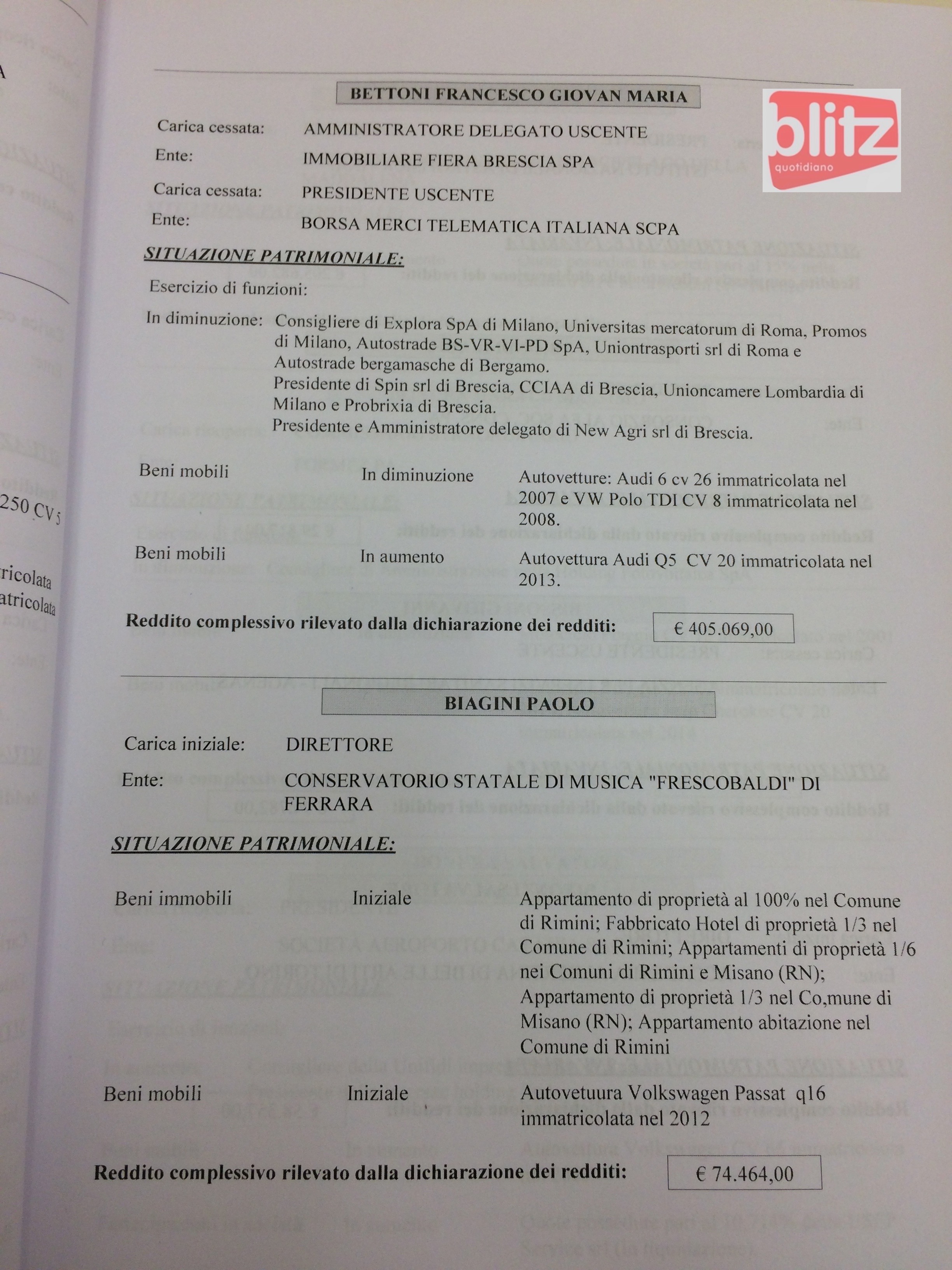 - Francesco Giovan Maria Bettoni Amministratore delegato uscente Immobiliare Fiera Brescia Spa – Presidente uscente Borsa Merci Telematica Italiana Scpa 405.069